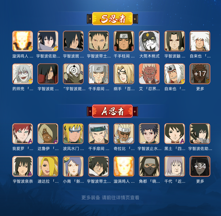 限制: 撤单率<75%才可租用此帐号装备描述:33S传说自来也丨须佐卡卡西桃式丨秽土解斑丨丨九喇嘛死门凯丨忍战带土秽土斑白面具秽土扉间暴怒带土