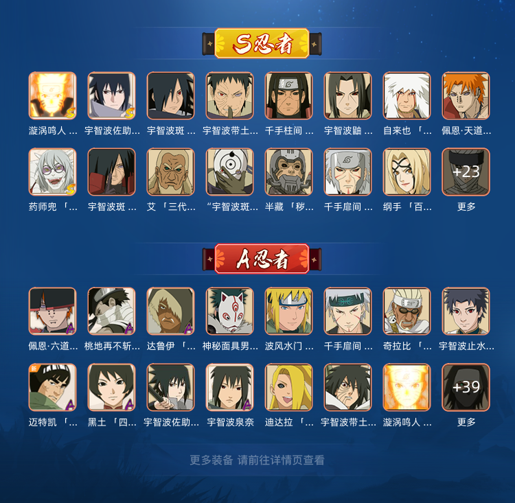 限制: 撤单率<75%才可租用此帐号装备描述:39S传说自来也须佐卡卡西秽土解斑丨忍战带土永恒佐助丨死门凯忍战带土!!白面具鬼灯!鸡翅暴怒带土