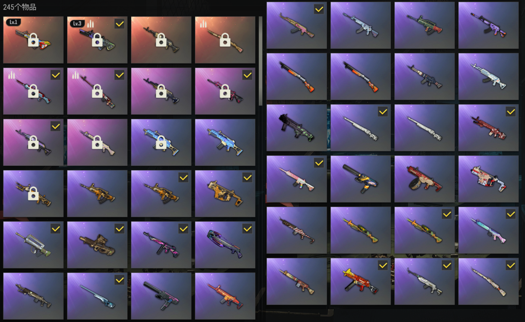 满级号✅马丁跑车✅2神器✅霓虹AUG✅弹珠AUG✅玫瑰花团武器套✅猎人套装✅PCS2套装✅PGC战术
