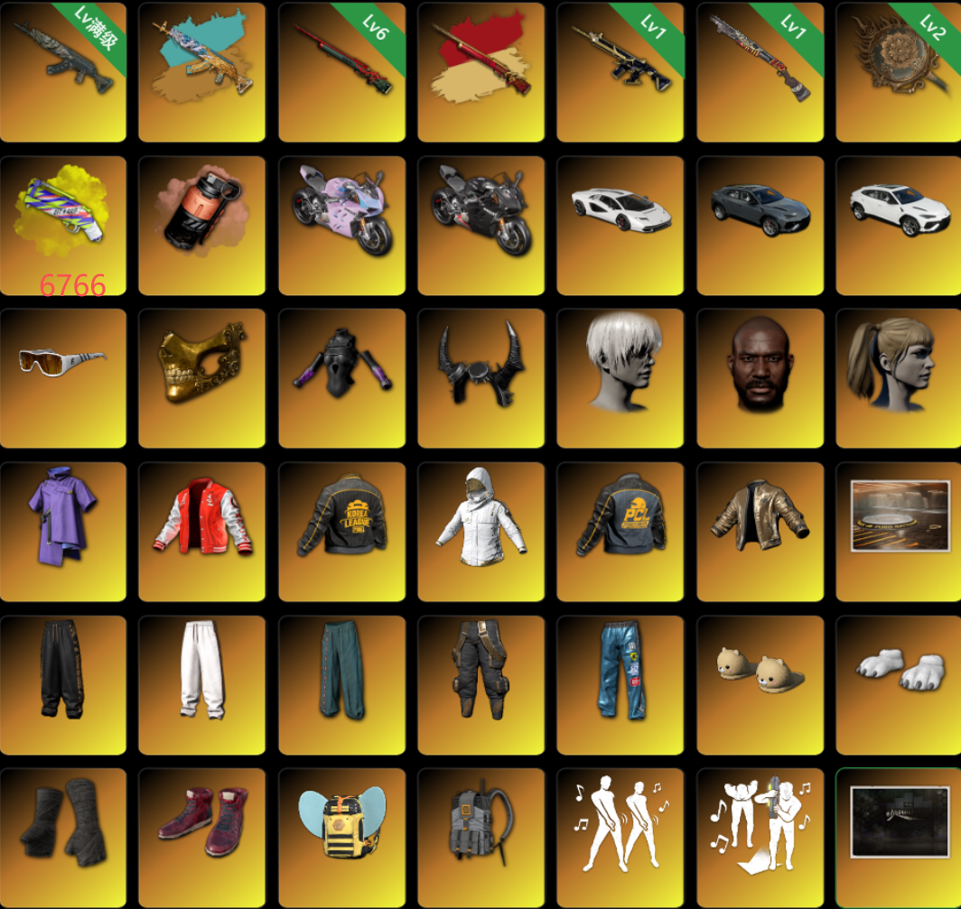 满兰博杜卡迪2✨⑩级金龙762✨6级异色悟空m24彩烟烟枪平底锅✨尼尔黑鬼金面发光臂新舞蹈