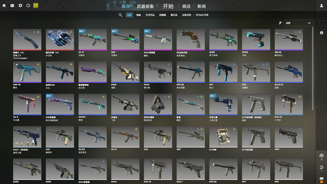 完美C+(1590)✅澄澈之水蝴蝶⭐摩托手套⭐AK47可燃冰⭐M4A1幽独⭐AWP可燃冰