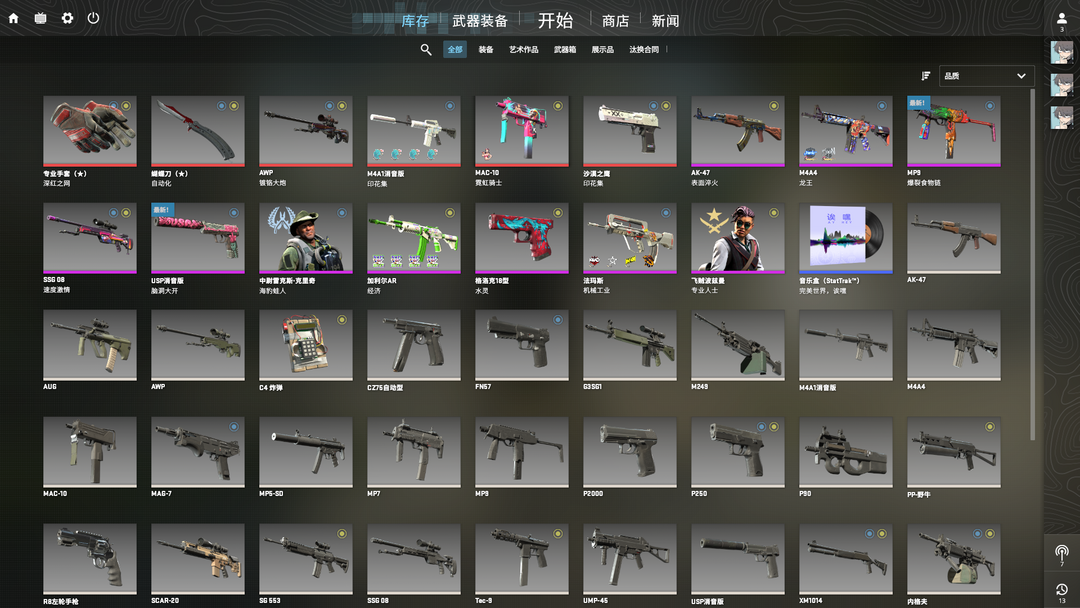 完美新手B⭐自动化蝴蝶刀⭐黄金淬火AK⭐印花集套⭐镀铬大炮awp⭐深红之网手套⭐主战齐