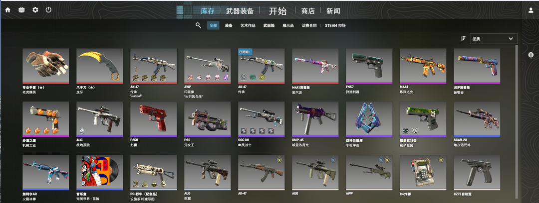 可5E完美新手❤️虎牙爪子刀❤️老虎精英手套❤️青花瓷AK❤️蒸汽波A1❤️印花集狙❤️炼狱之火M4