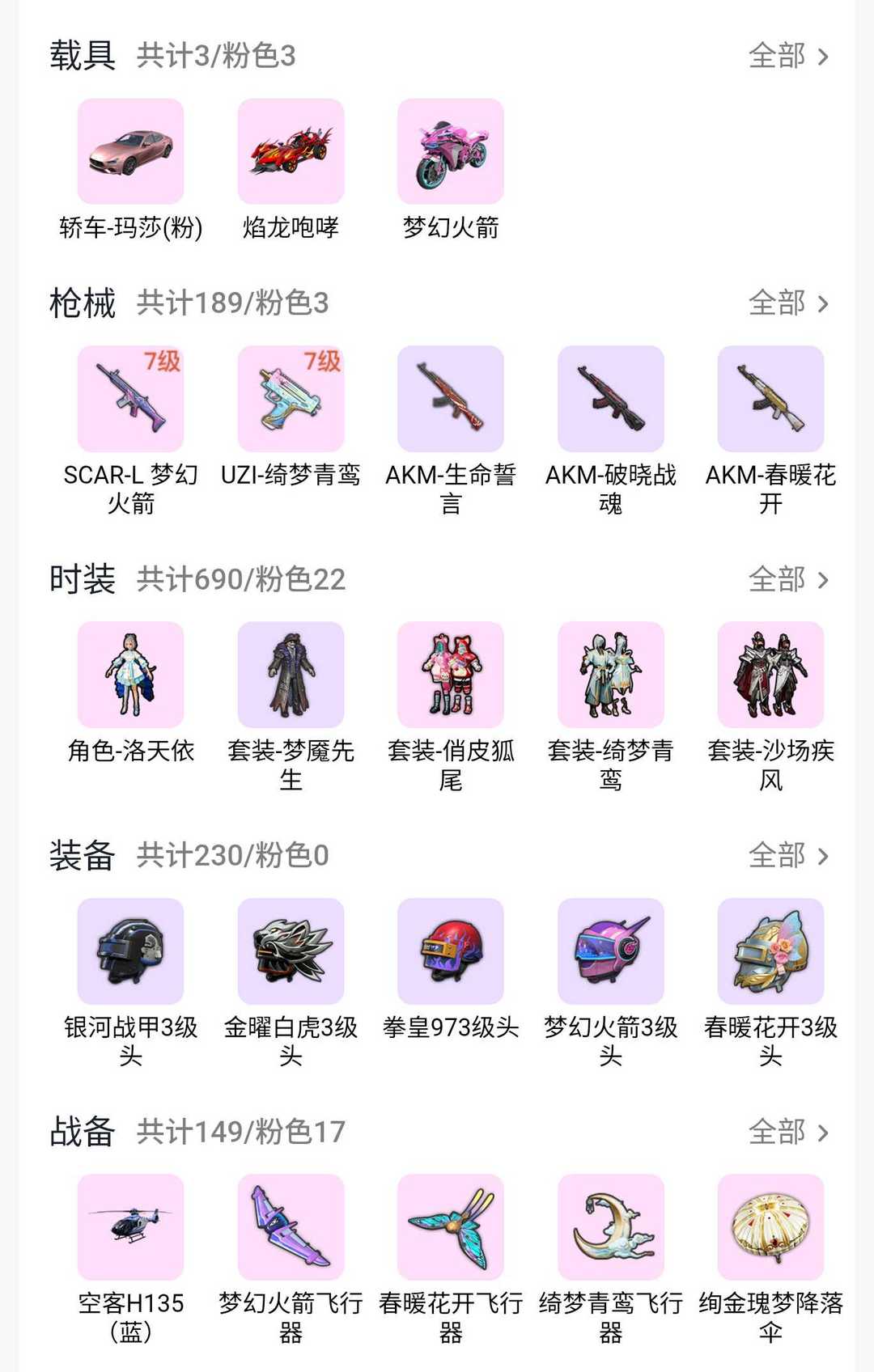 限制: 租号5次及以上 |装备描述:>>>>>>毁号,涉及毁坏虚拟财产罪及计算机安全罪,请文明游戏素质游戏,让我们共建美好租号平台>>>>>> 本游戏账号:特效枪数量2个,粉装数量7套,载具数量3个,优质装备有: SCAR-L-梦幻火箭, M762-快乐主宰, AKM-春暖花开, 套装-蓝莓炮弹, 角色-洛天依, 星之彼岸降落伞, 春暖花开降落伞, 梦幻火箭降落伞, 焰龙咆哮, 玛莎拉蒂Ghibli(粉), 双人摩托-梦幻火箭, 春暖花开头盔(3级), 暗夜玫瑰头盔(3级), 梦幻火箭头盔(3级)等,供您畅选,感受良好游戏体验! 注意事项: A.游戏过程中请不要恶意挂机或者不文明发言 B.恶意挂机、顶号等行为将被拉黑无法再次下单 C.进入游戏后中途请勿退出登陆,否则无法再次上号 D.部分账号由于异地登录可能会出现密码错误提示,通常再尝试5-6次后可上号 |||||||||喜欢本账号请点 ☆收藏☆ 方便下次租用,谢谢光临惠顾|||||||||