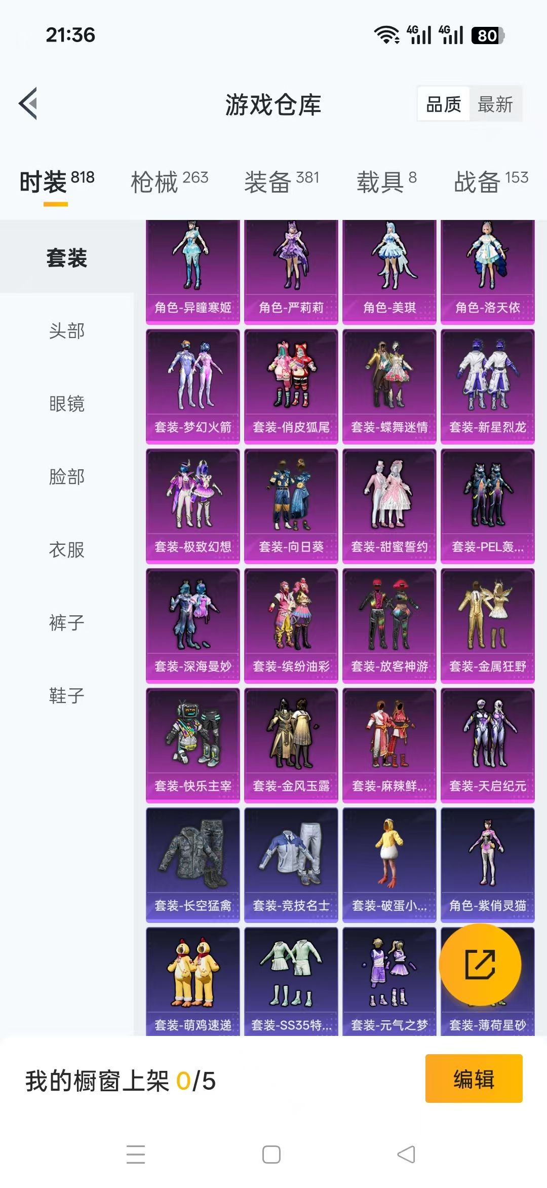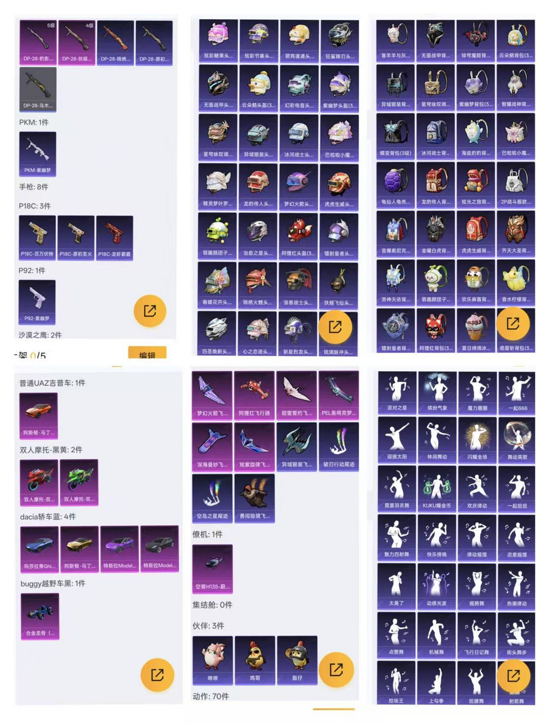 限制: 租号10次及以上 | 撤单率<49%才可租用此帐号装备描述:该号女号喔~ 套装219件,粉色20件 枪皮263个,特效枪8个 装备381个,三级头48个,三级包65个 载具皮肤8个 降落伞66个,滑翔尾迹10个,僚机1个,伙伴3个,动作70个 请勿开挂请勿乱撤单喔~祝您游戏愉快