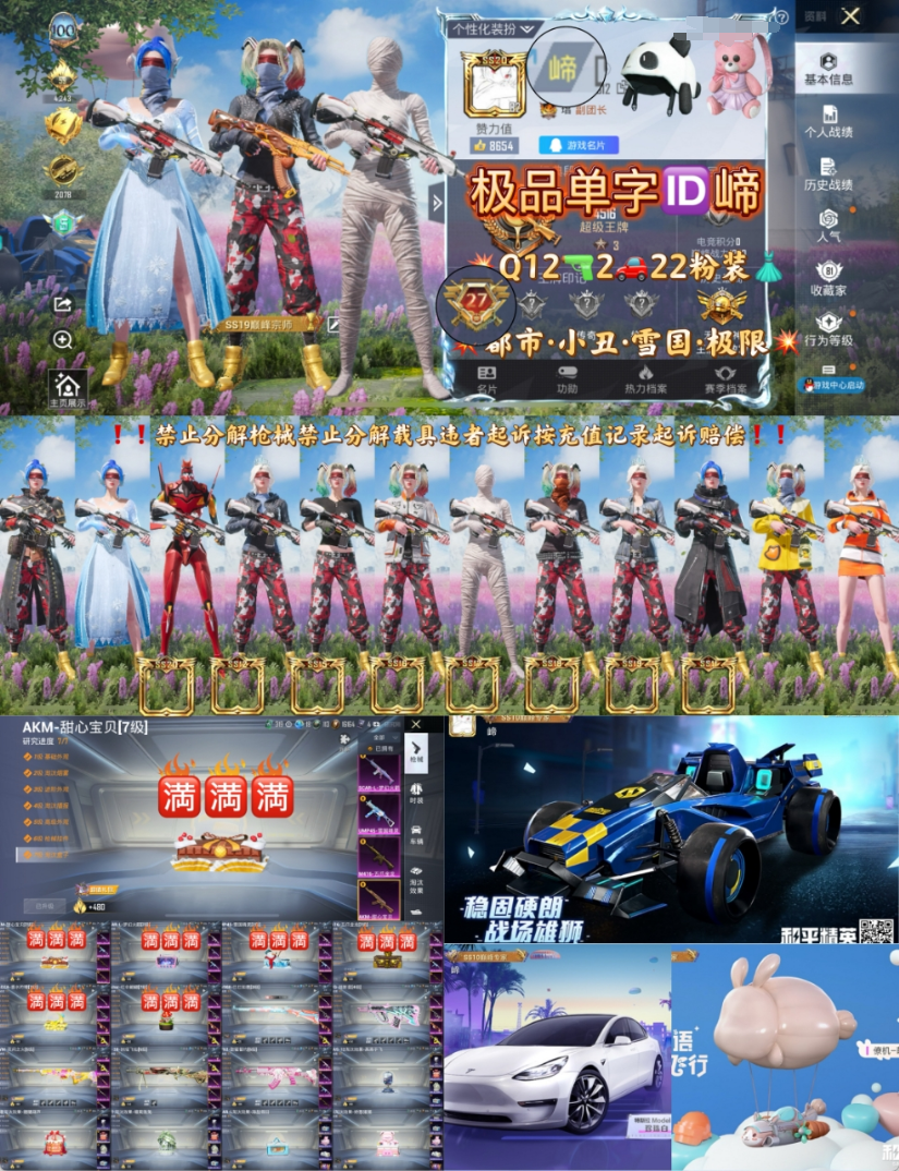 限制: 租号6次及以上 | 撤单率<35%才可租用此帐号装备描述:本店致力于低价高质量账号,做到让每位玩家都能租得起号,租得到号,让每位老板都能玩得开心、玩得放心; Ⅱ本账号已经网络虚拟财产备案,对外挂零容忍,若租客在租号期间开挂导致账号被封禁,统一交由平台提取个人信息上报至公安局,按照账号价值原价赔偿; Ⅲ挂机、账号排位KD(kd>1.8)过高等会导致账号禁排,望各位大神手下留情⚠ Ⅳ各位老板在租号最后请不要开游戏秒退,以免影响下一位用户的体验,在您下单后会送您额外的十分钟; Ⅴ祝愿每位老板都能玩得开心、玩得尽兴,感谢各位老板光临小店❀