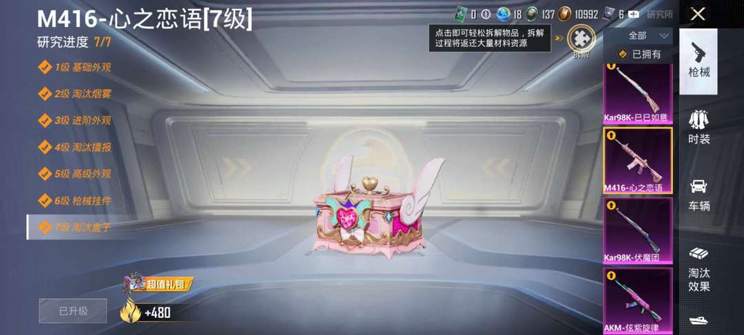 150套皮肤 3粉装/4特效枪/2载具 m4心之恋语ak炫紫旋律满级