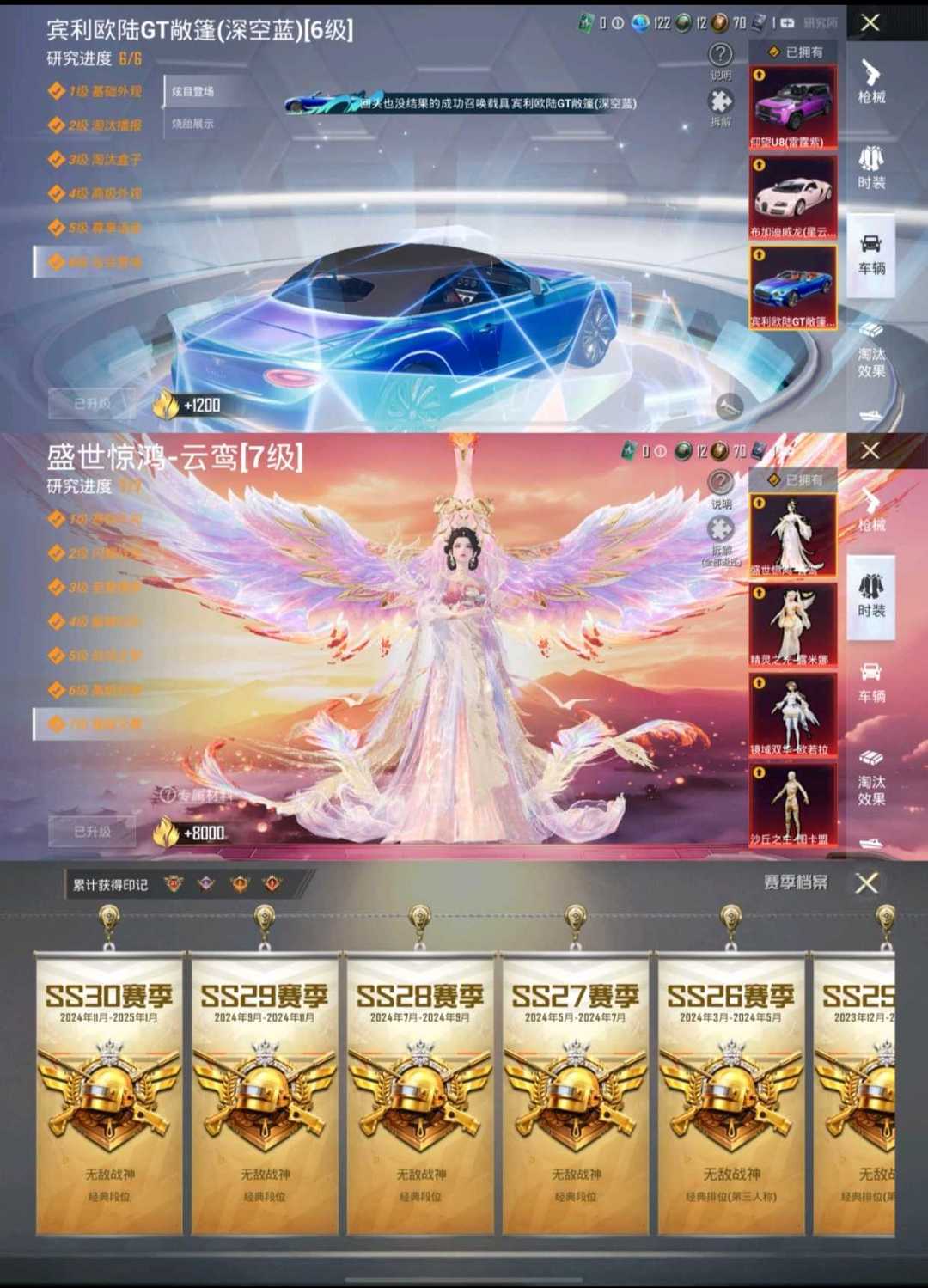 满级红装-盛世惊鸿-4红装-满6级宾利欧陆-单字ID-9级超新星-9级宇宙意志-9级P90沙丘之主-