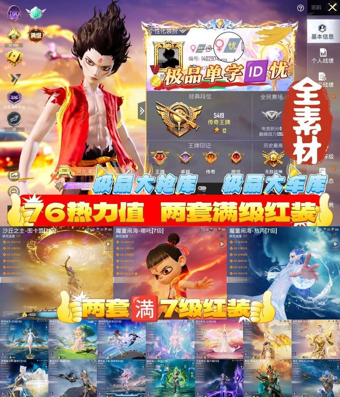 极品单字id忧❤️第75探险家老101本赛季战神❤️满级哪吒满级保时捷两套满级红装满级木乃伊76万热