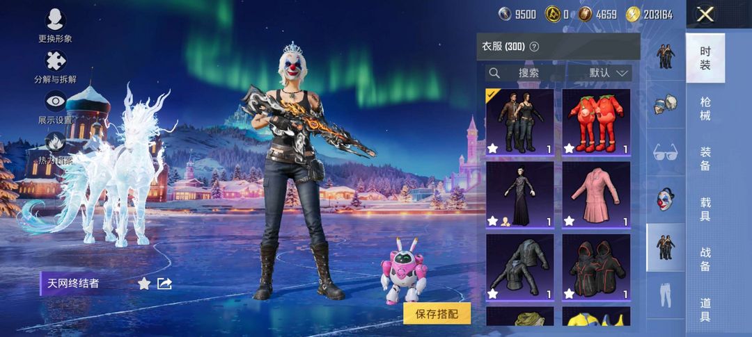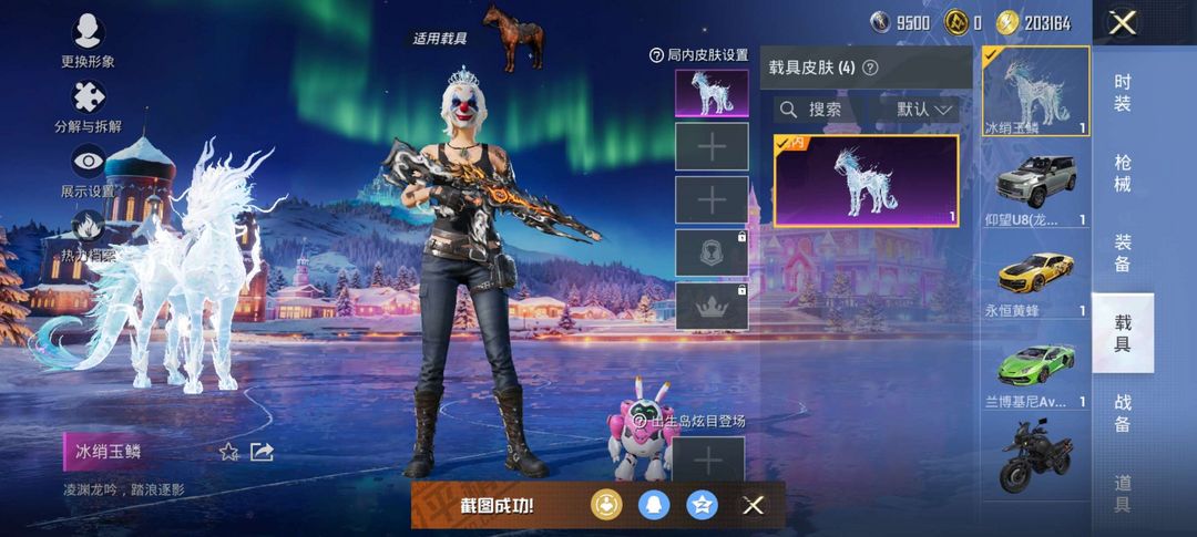 13粉装,11特效枪,4载具,4个热门飞行器,老101,天网,雪国,小丑,红装:魔龙九天