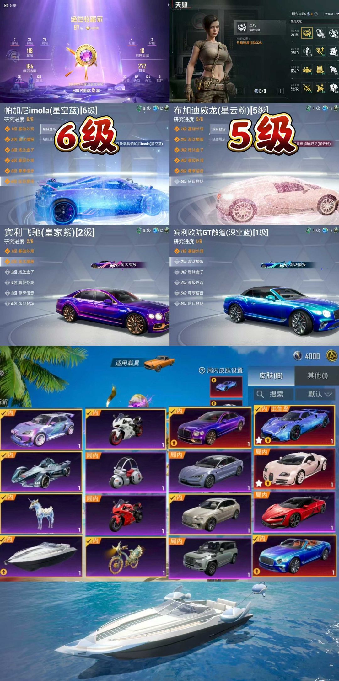 满级红图卡盟⚡满级帕加尼蓝⚡9级女娲灵识M416⚡42粉26特16车⚡5级布加迪粉