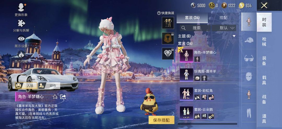 1粉装/1特效枪/1载具保时捷911 粉装羊梦糖心 喜羊羊等套装 女生号