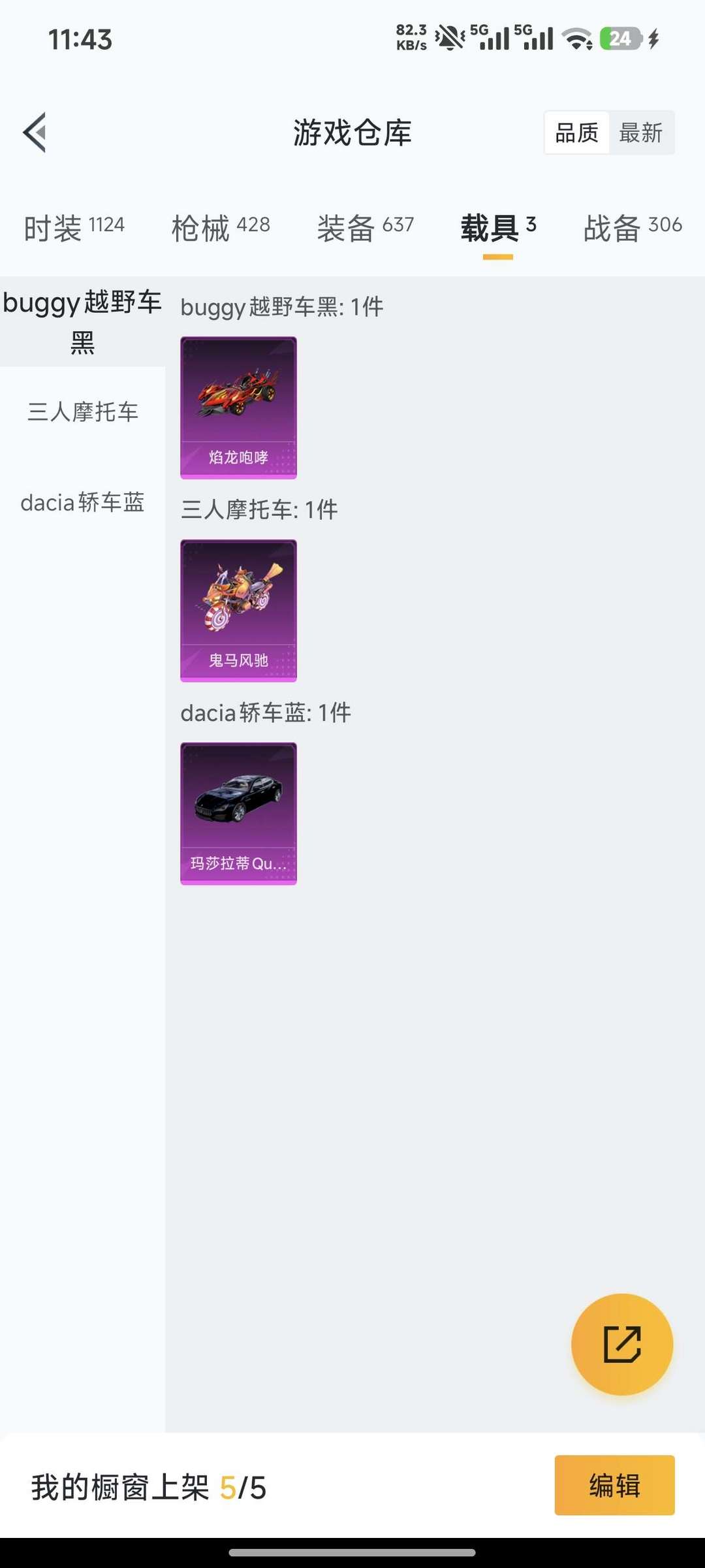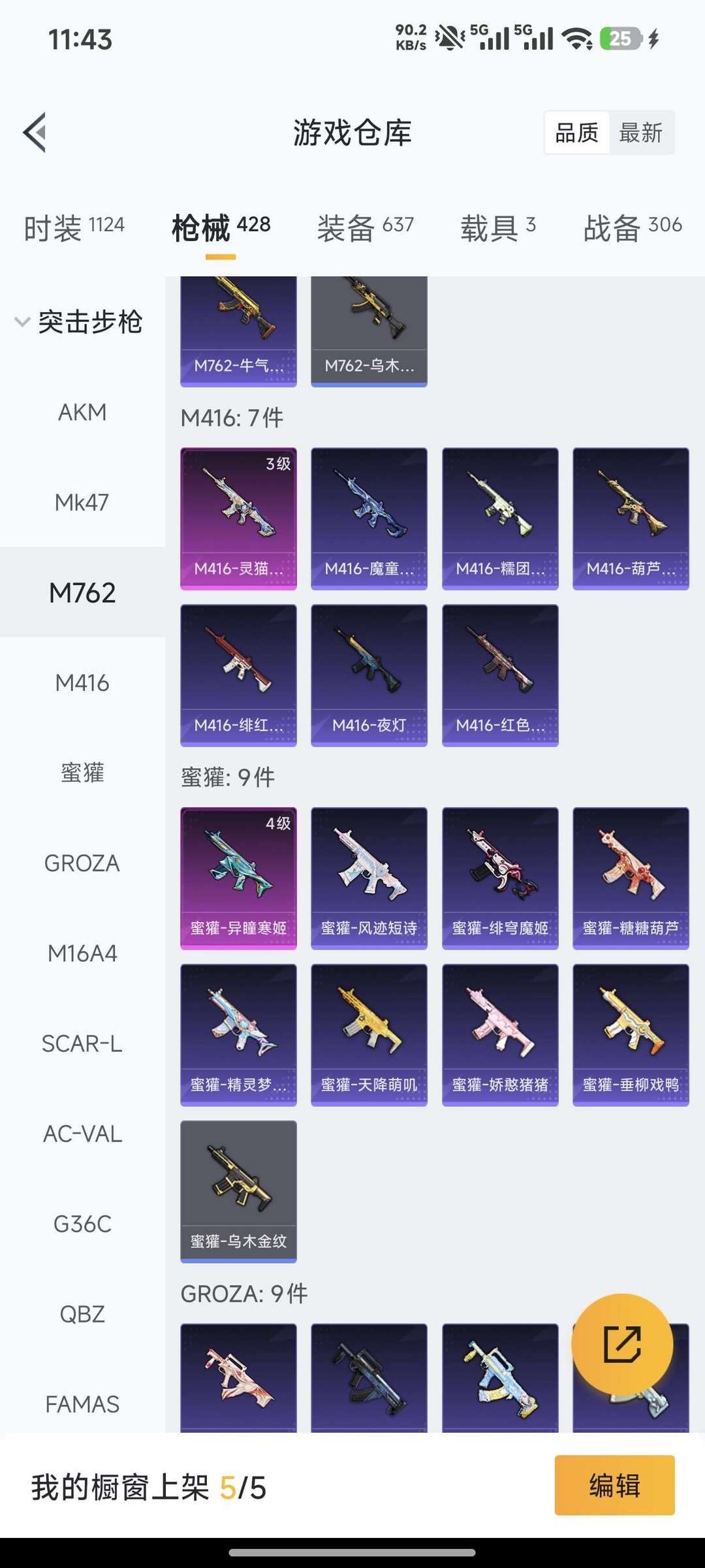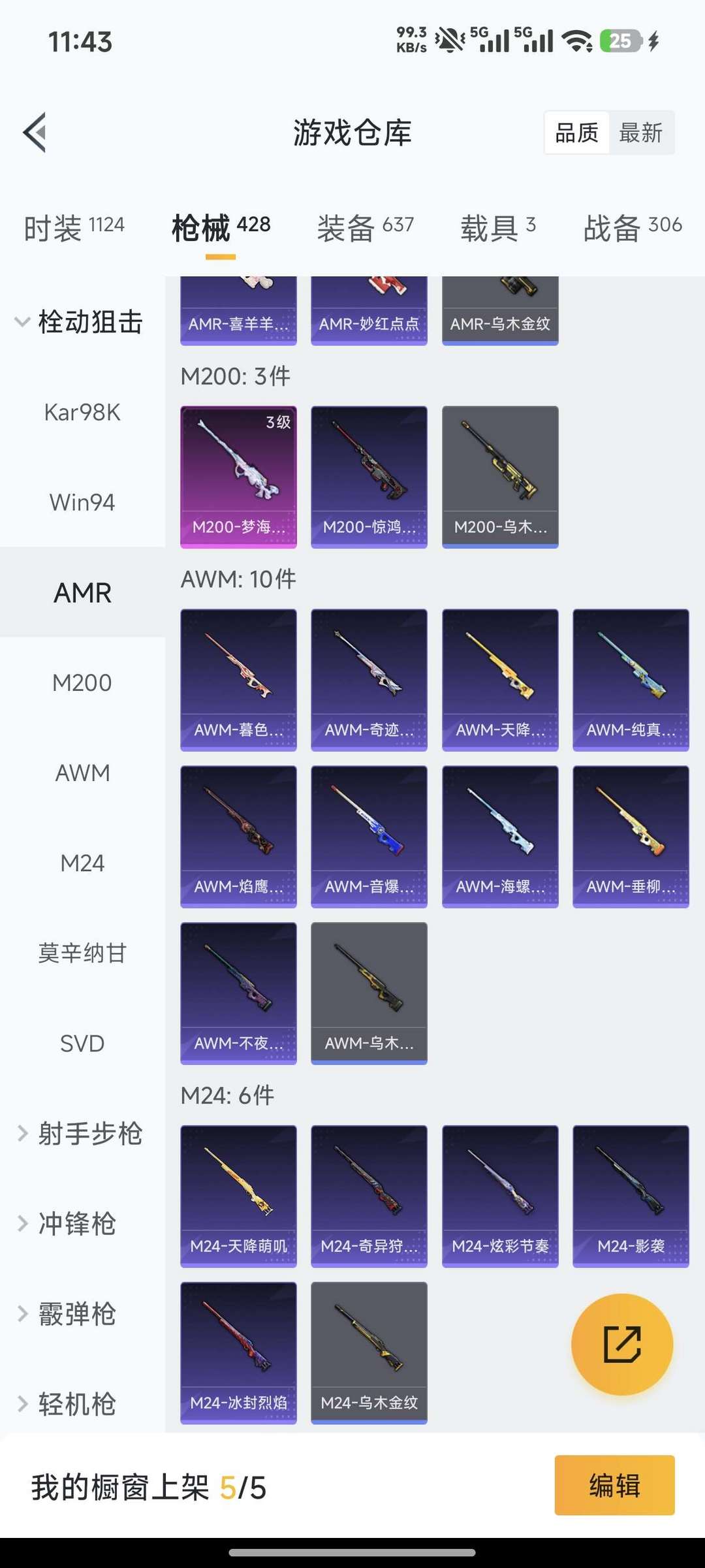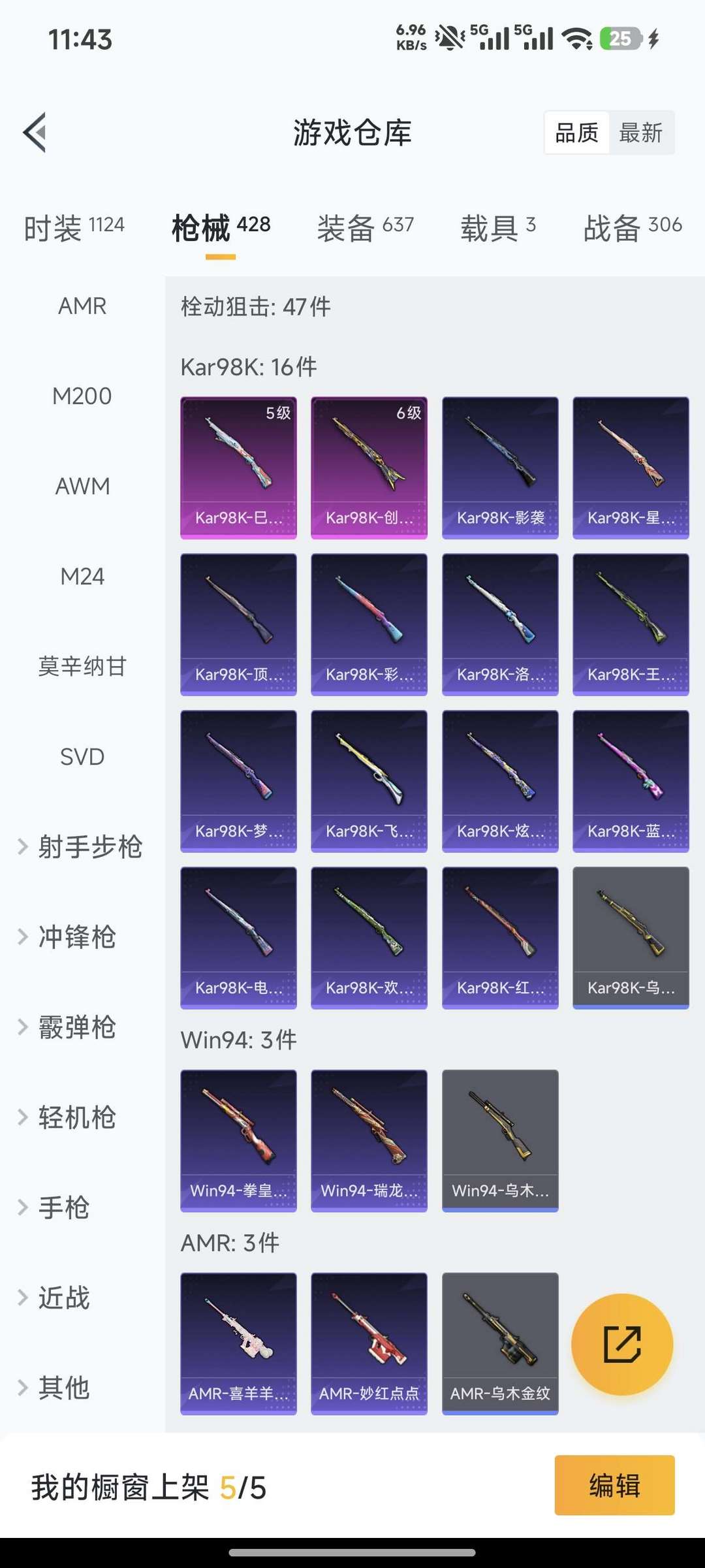 2红装,25粉装,7特效升级枪,3载具车皮,
