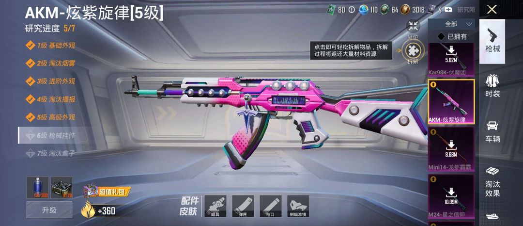 三辆汽车皮肤 +粉色衣服 +快乐主宰一套皮肤 ak m4 还有飞行器价格实惠!!!