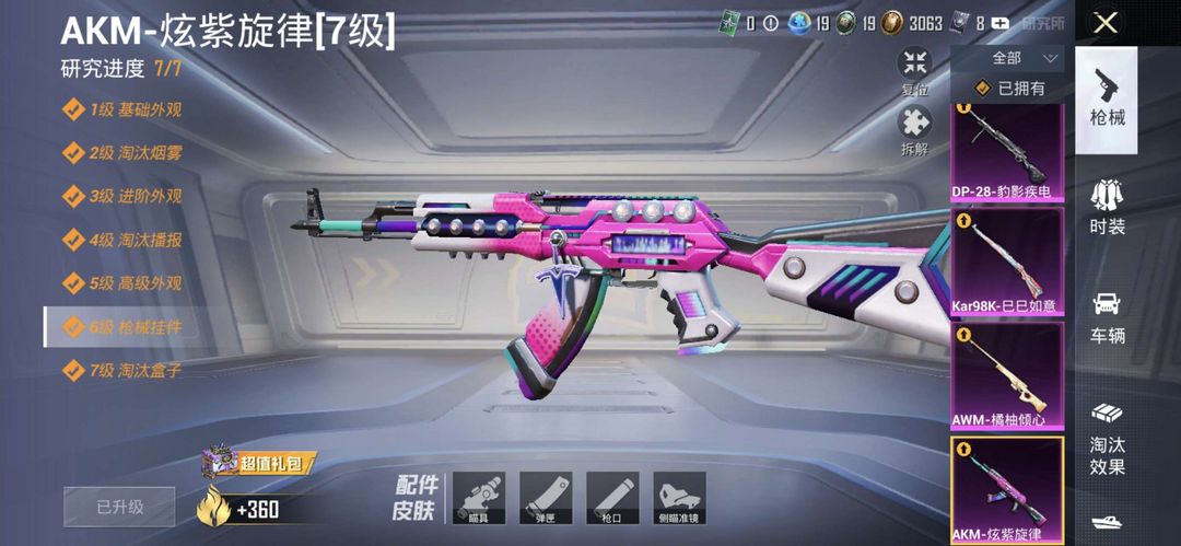 1粉装,4特效枪,1载具,炫紫旋律橘柚倾心