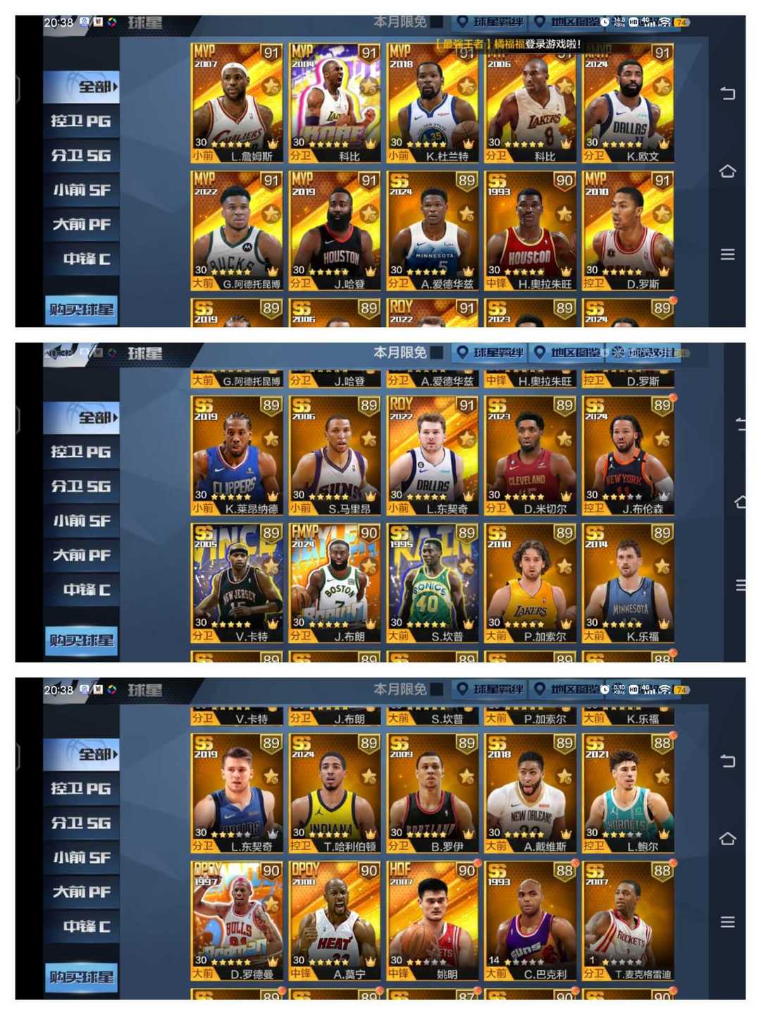 可排位华子乐福♥布朗新科欧文♥10天选幼詹字母哈登勇杜77罗斯♥5硬汉大虫卡特坎普莫宁罗伊小卡