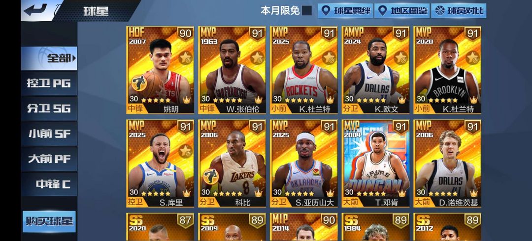 可排位❤️姚明二专,新库里,张伯伦,火箭杜兰特,欧文篮网杜兰特二专屠龙亚历山大诺维斯基邓肯五典藏