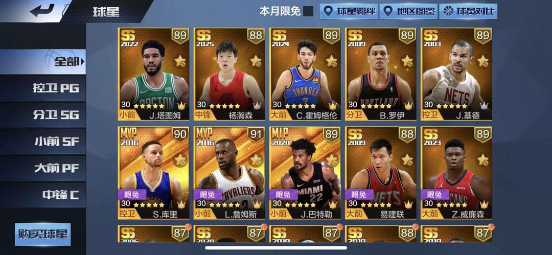 ★塔图姆★霍姆格伦★罗伊★杨瀚森★库里★基德★全力詹★巴特勒★易建联★威廉森★