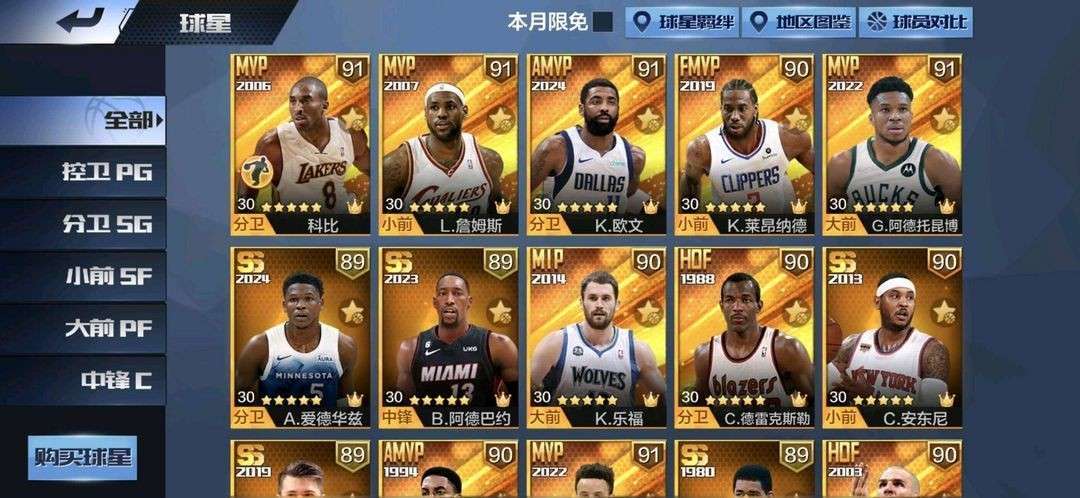 04★可排位★专业★5天选★2专属屠龙幼詹欧文库里字母乐福爱德华兹阿德巴约皮蓬格文