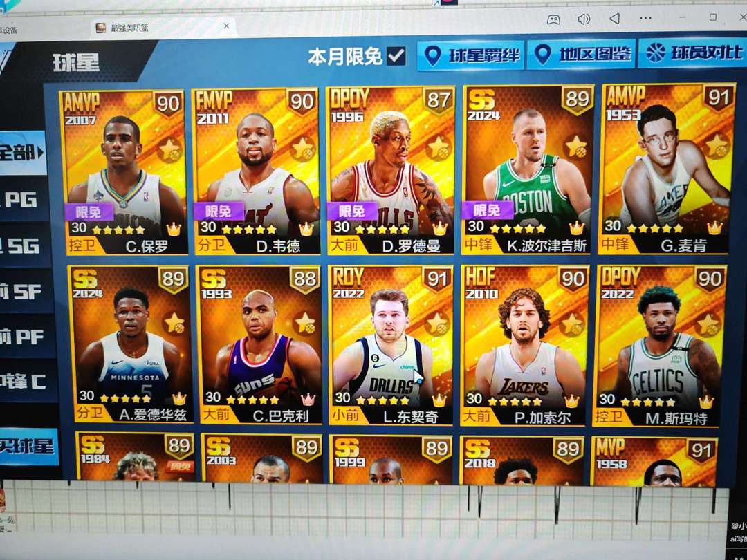 可玩所有赛事,,1天选东契奇,29点券球星,3个位置有多个不同类型强势球星选择,也有娱乐性