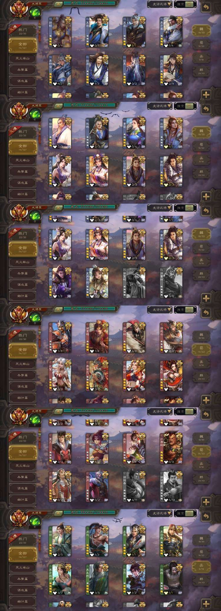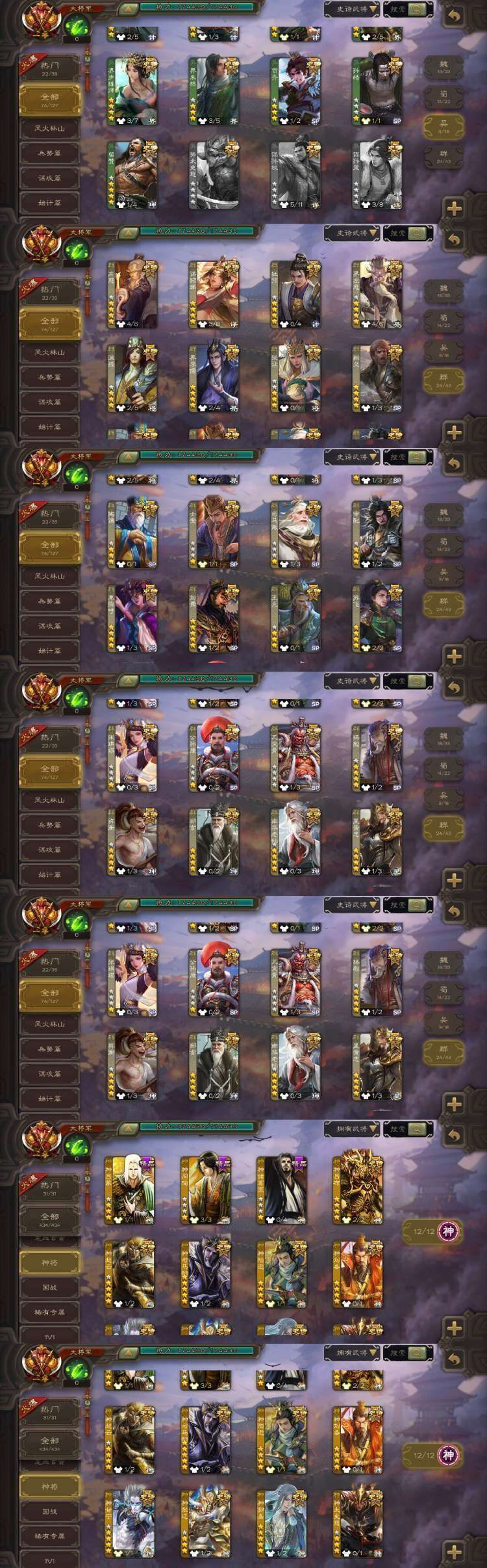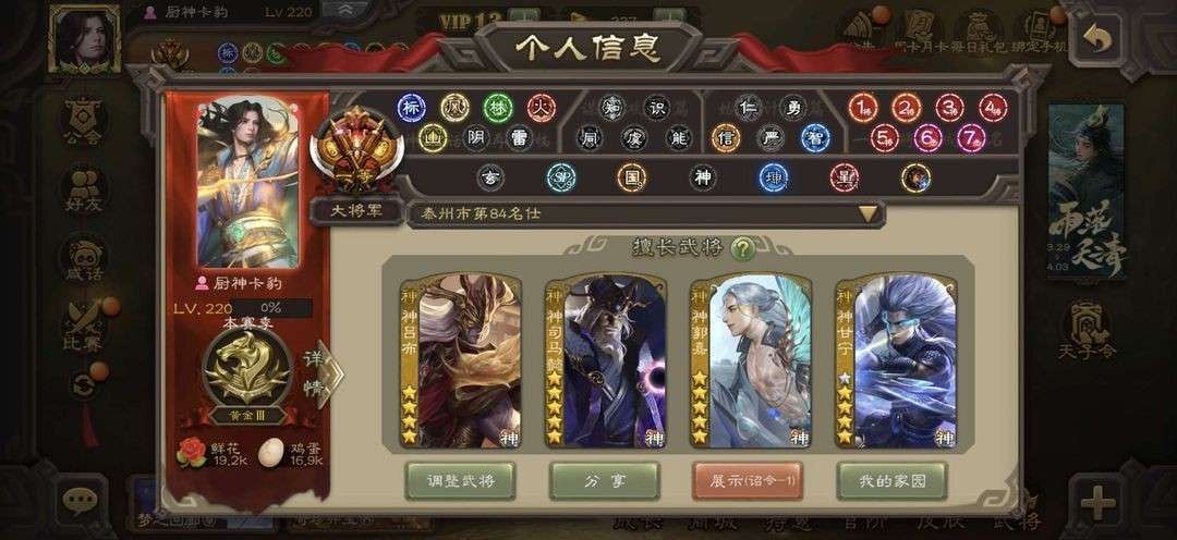 限制: 租号2次及以上 |装备描述:官方一等大将军 三卡齐全。 新增势于吉!新增友徐庶,最新一期天子令动郭嘉 星周不疑 回廊潜蛟觊天动界钟会 动刘焉 动神甘宁 动神郭嘉 谋貂蝉 杜预 杨彪 南华老仙 神司马懿 谋马超 花髪 回廊界朱然 冠绝天下神吕布等领衔75史诗一等大将军。