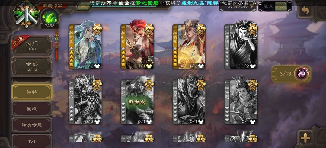 有点将卡★双形态动神郭嘉★动神荀彧★回廊神孙策★动谋诸葛亮★动态界徐盛(大宝)界钟会司马徽司马师