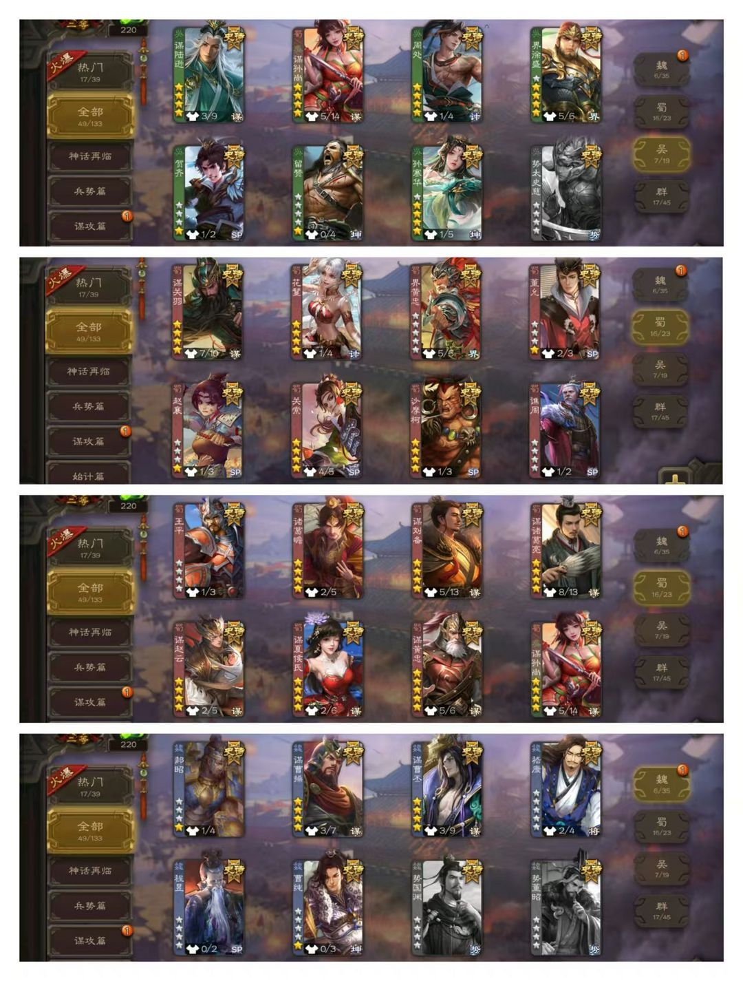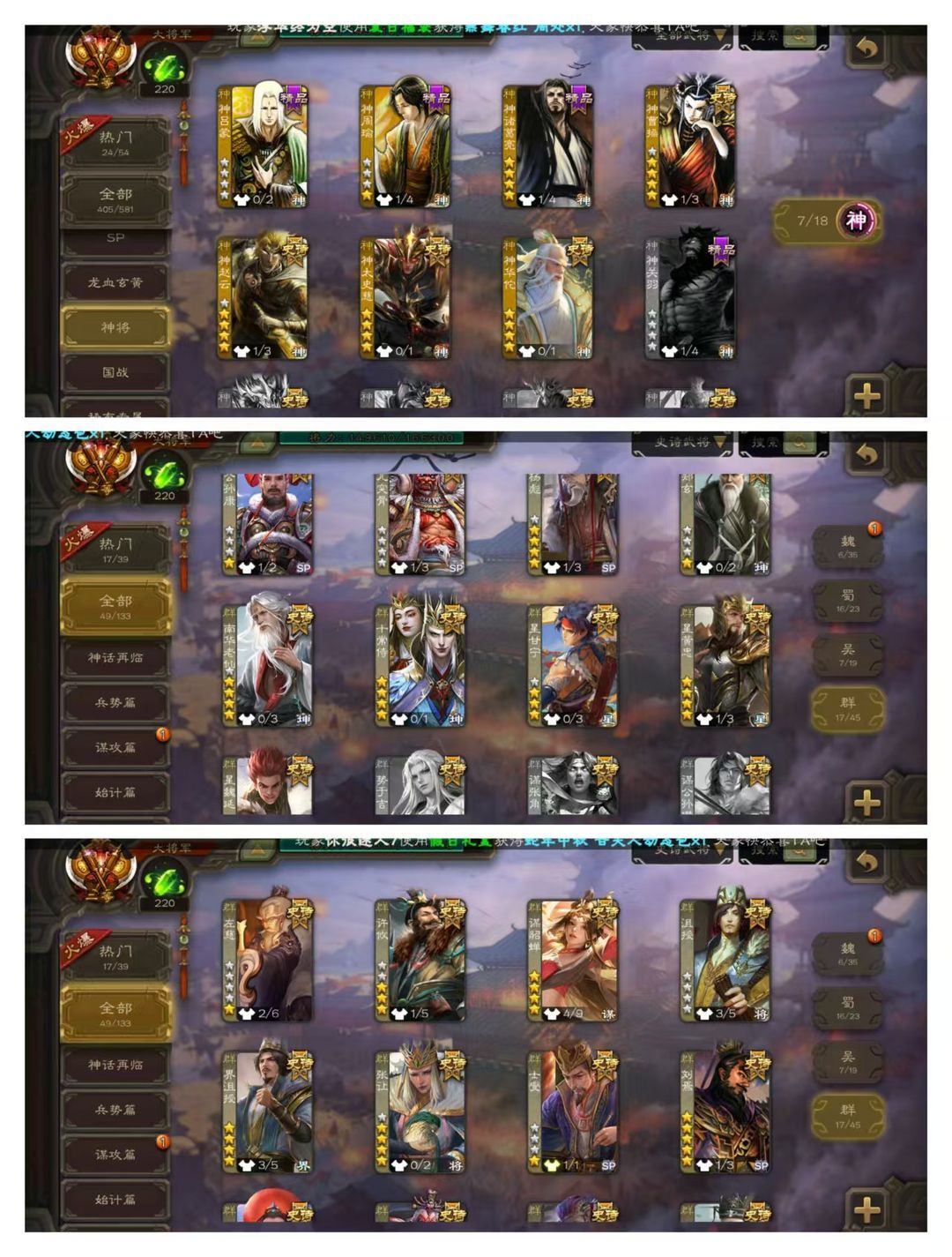 有卡【50史诗大将军】动刘焉动神曹操动谋曹丕动谋关羽动谋貂蝉动谋黄忠+神华佗十常侍界沮授谋陆逊