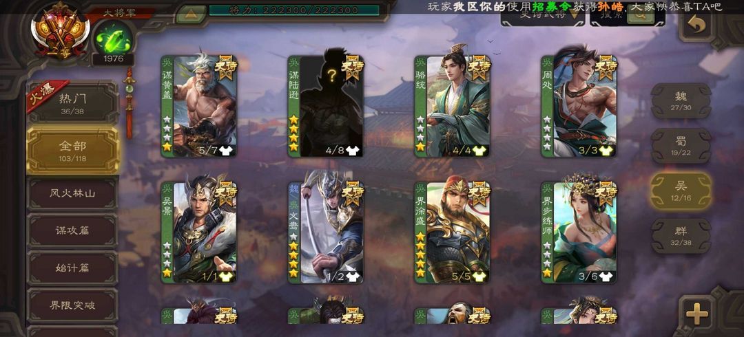 伪全扩104史诗一等大将军动谋陆逊曹髦动神司马懿。动神曹操动刘焉双形态神郭嘉谋公孙瓒双形态杜预