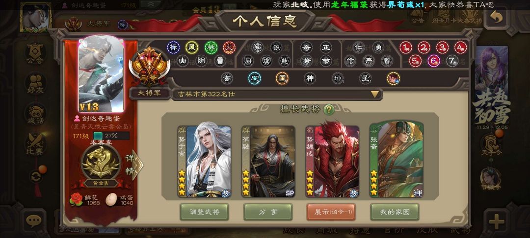 限制: 租号1次及以上 | 撤单率<5%才可租用此帐号装备描述:违者拉黑,豆票只能换豆子,禁止乱换其他的东西,每单一查兑换记录,违者永久拉黑,禁止逃跑投降,情节严重提交给商户经理处理,封禁您的账号!最新动态张奋,双至尊双形态谋孙策,至尊界钟会,斗地主军八热门全齐,全新武将和皮肤体验!!文明租号,文明租号,谢谢大家支持,祝老板玩的开心!