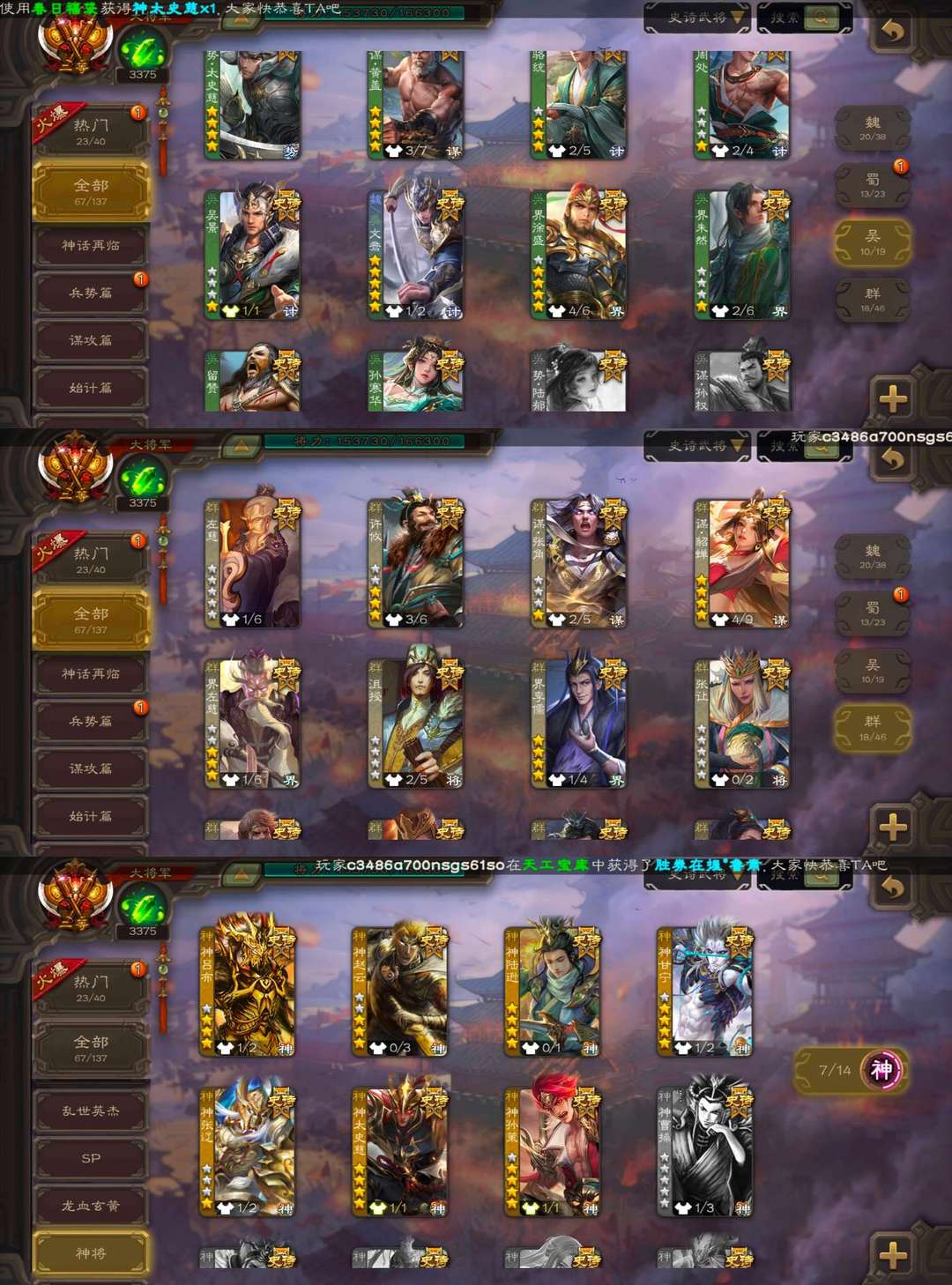 [有卡有豆35万]全皮崔芙已氪❤️势魏延曹髦⭐️势太史慈谋诸葛亮神甘宁☪️神孙策斗地主大将军高倍拉黑