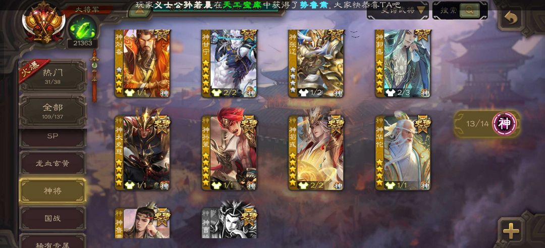 v18一等大将军109史诗137动皮q崔芙至臻谋孙策至臻神郭嘉回廊神荀彧回廊神甘宁刘焉势董昭谋曹丕曹