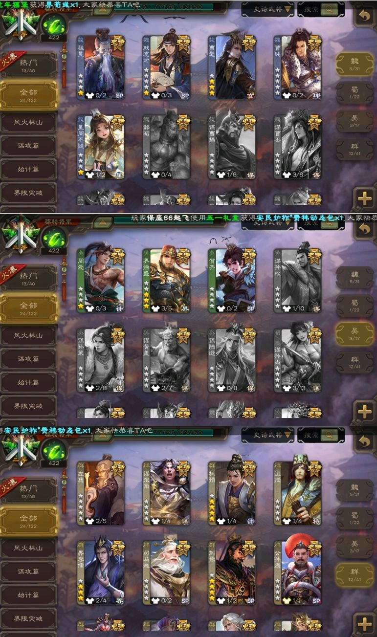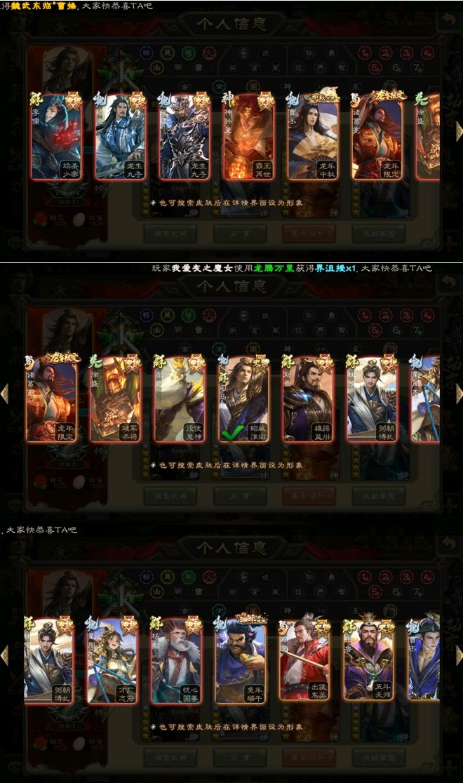 装备描述:曹髦、司马昭、戏志才、星周不疑、曹纯、程昱 刘焉、杜预、杨彪、界李儒、南华老仙、星黄忠、司马徽、左慈、沮授、谋张角、公孙康、兀突骨、司马昭 神孙策、神太史慈、神赵云 界徐盛、周处、贺齐 花鬘、谋赵云、谯周