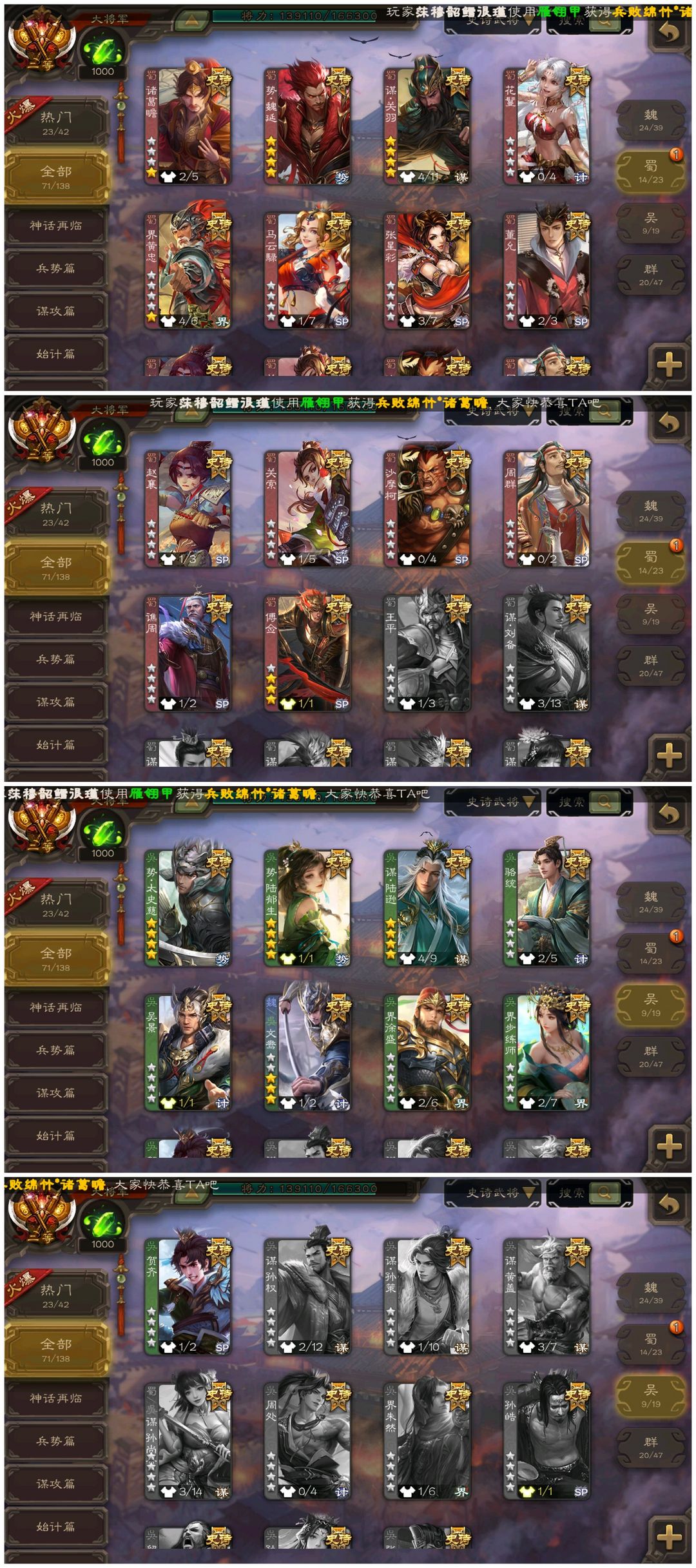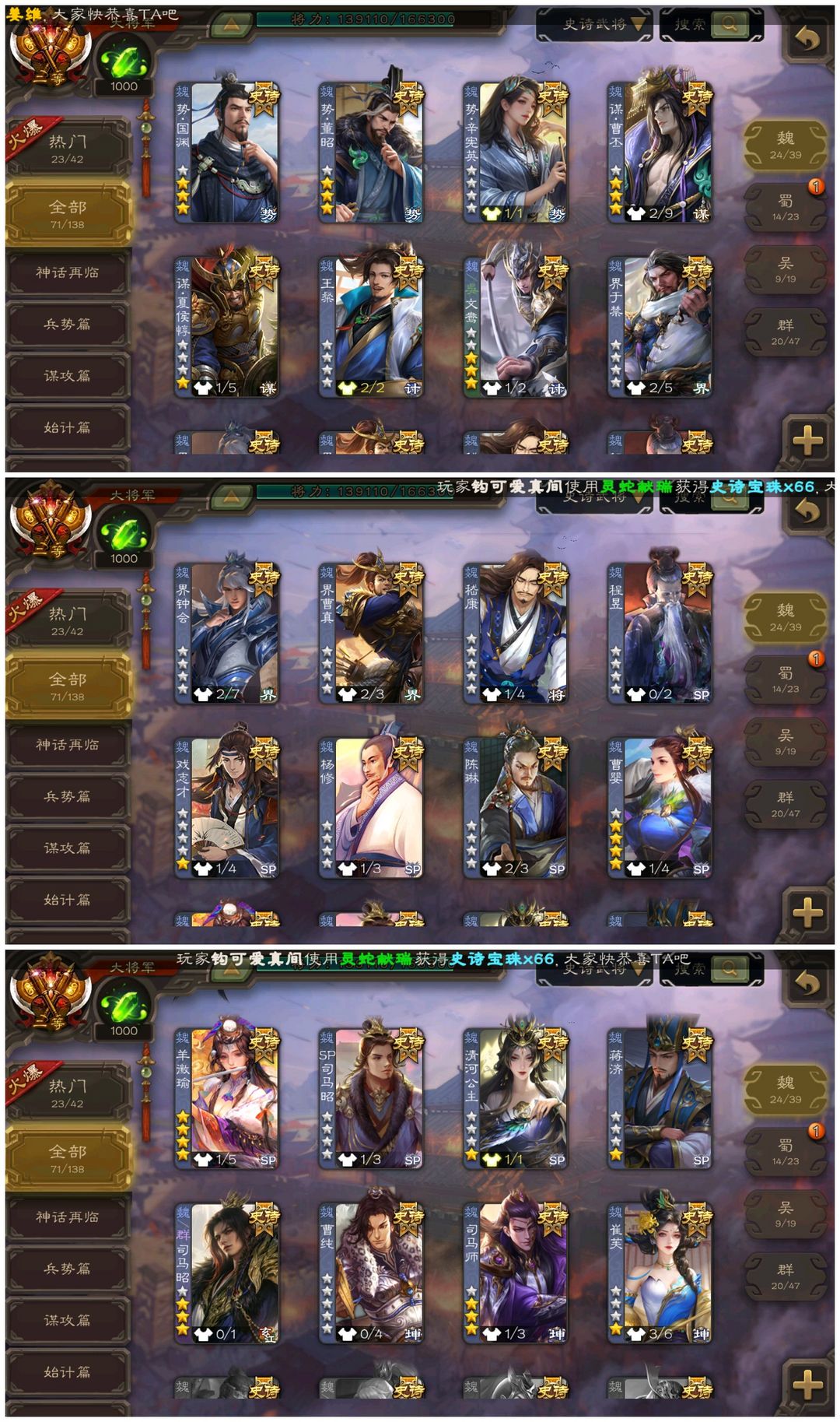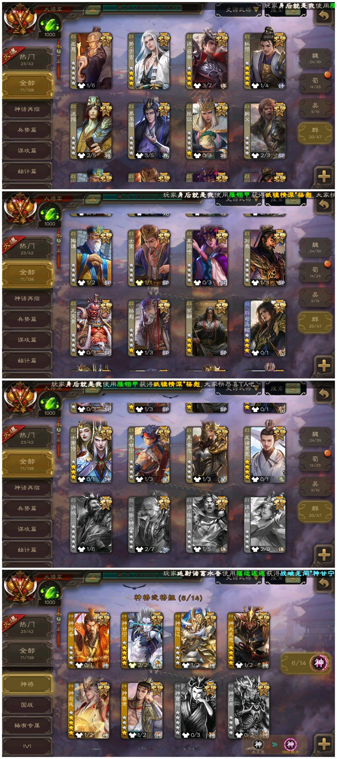 【有卡大将军】◆崔芙/势魏延/动神荀彧/十常侍/刘焉/动神太史慈/友诸葛亮司马昭回廊神甘宁动清河公主