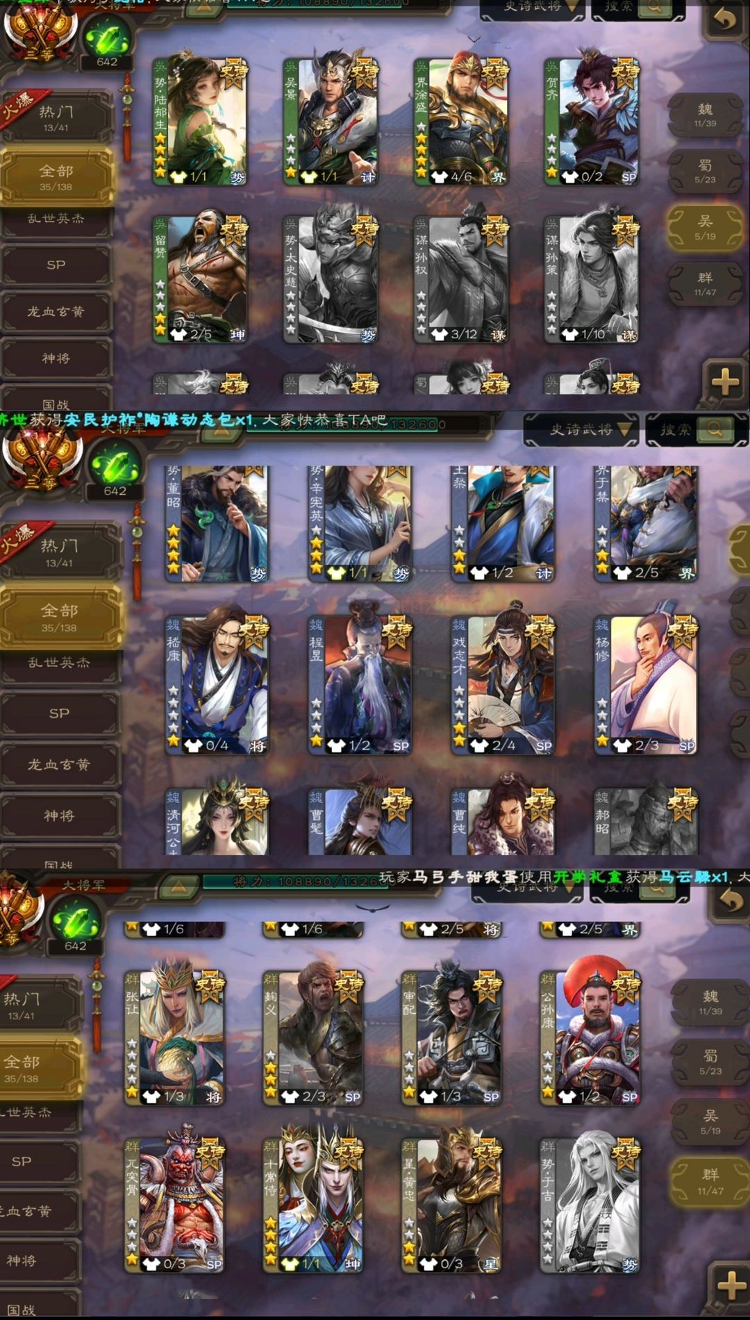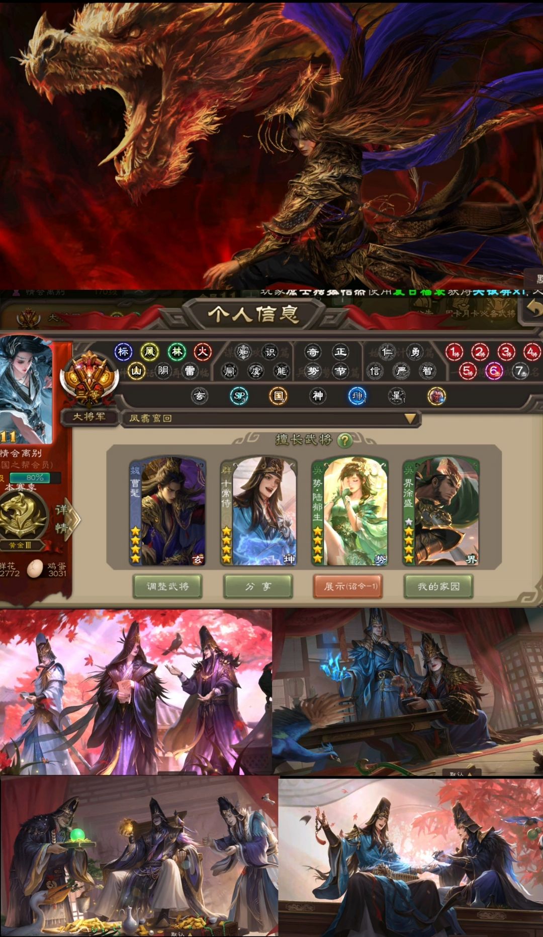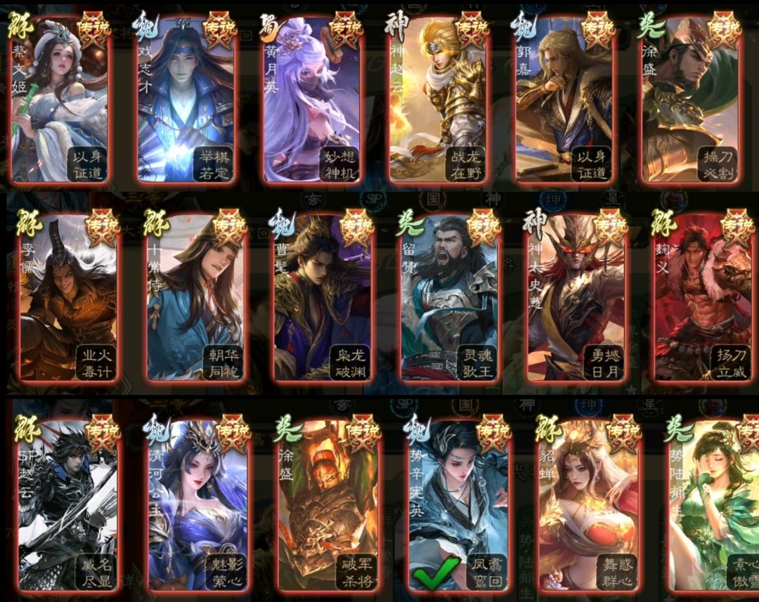 装备描述:枭龙破渊曹髦/朝华同袍十常侍/动势辛宪英/动势陆郁生/势董昭/动清河/动歌王/操刀必割动大宝/友徐庶 孟达 荡然由心谋贾诩 老大鲍信 势黄祖谋陈宫 谋诸葛瑾 双形态曹髦 双形态十常侍 动戏志才 动界李儒