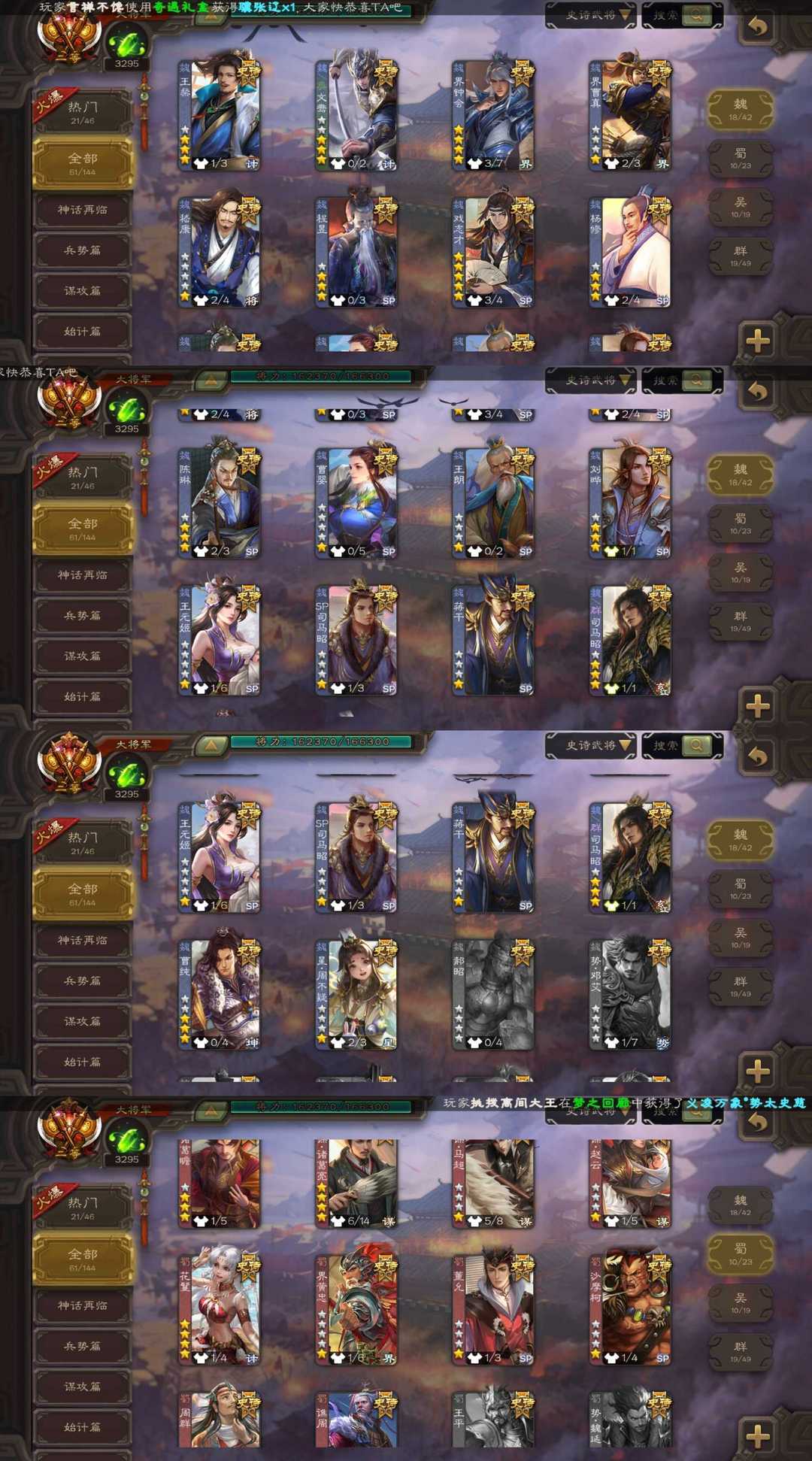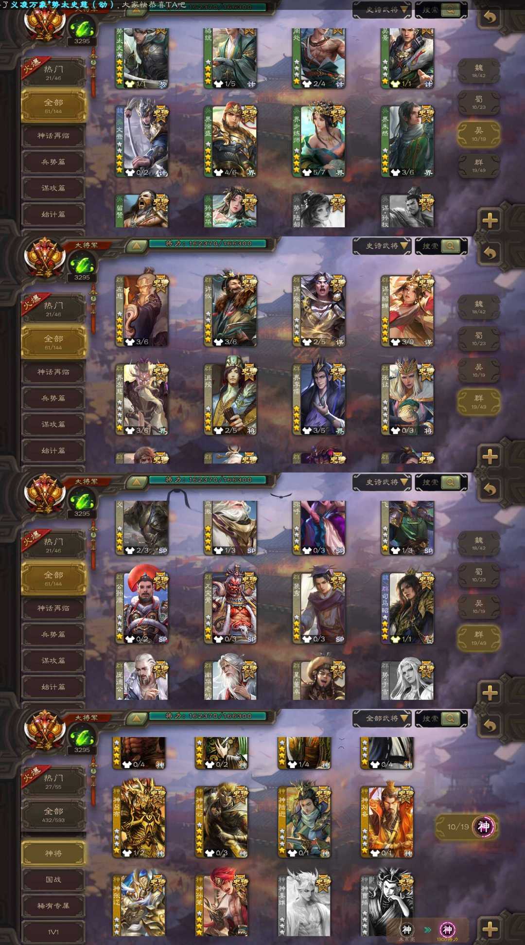 装备描述:大将军最新五形态至尊义凌万象动态势太史慈/动态谋诸葛亮/动态神孙策/动态孙寒华/动态谋貂蝉/动态界李儒等武将