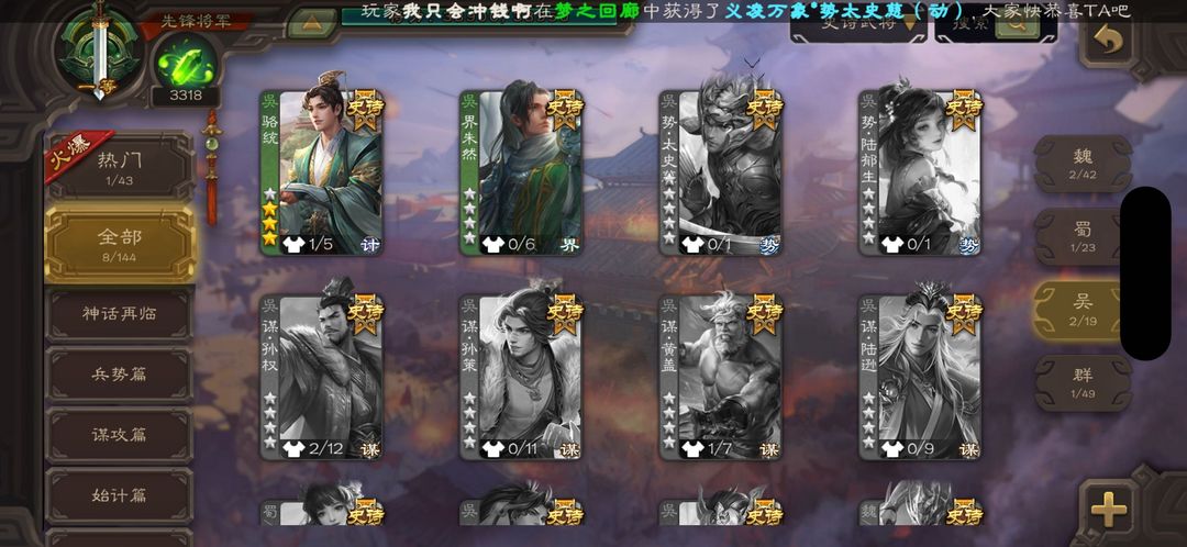 超级兵崔芙势于吉骆统谋夏侯惇,军8斗地主