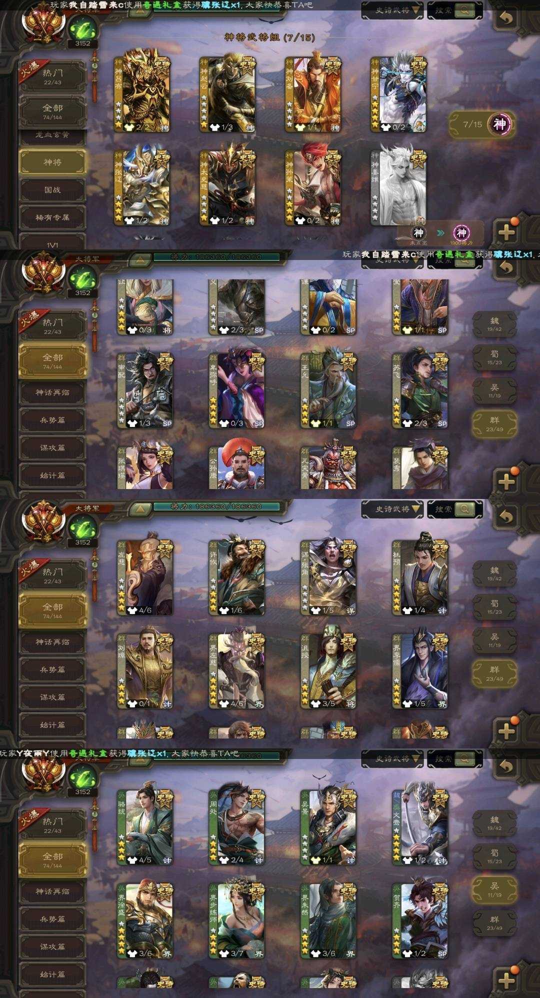【有卡三卡】一等大将军桃园结义将面?神甘宁神孙策?动态文鸯?谋黄忠孙寒华?双形态界钟会?动态杜预