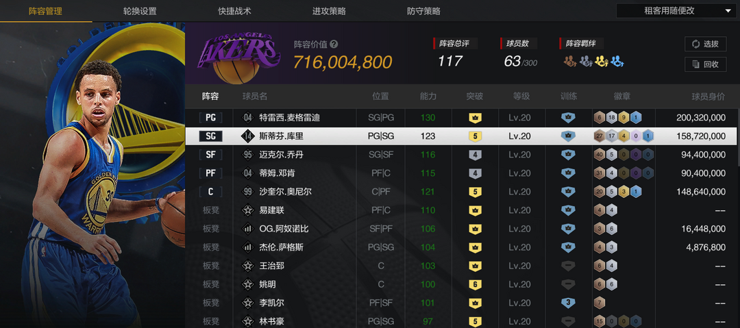 租3送1租4送2租5送3角色名:满麦迪+库里+奥尼尔+乔丹+邓肯