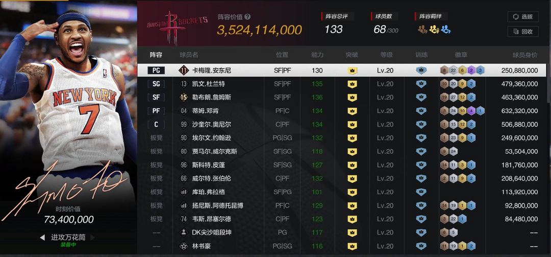 “36亿”【双时刻安东尼】【邓肯】【天神詹】【奥尼尔】【杜兰特】【皮蓬】【大帅】【魔术师】【弗拉格】