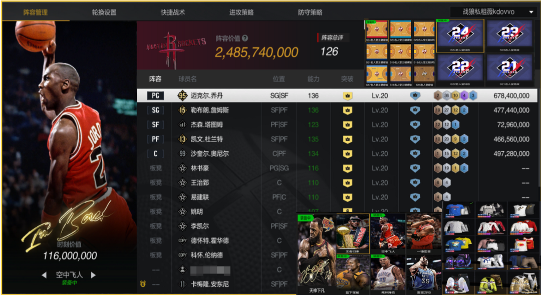 租3送1角色名:10突大时刻乔丹死神杜天神詹湖人鲨
