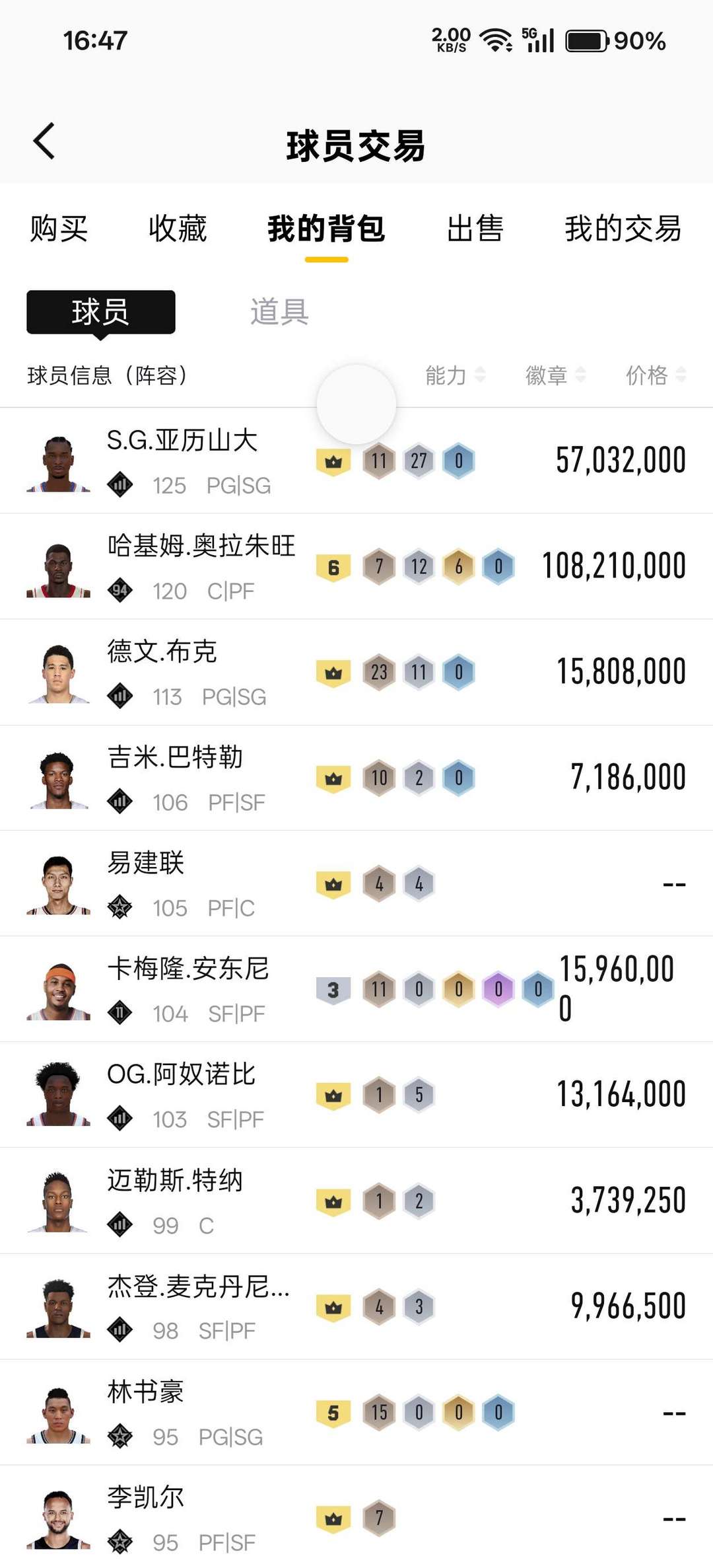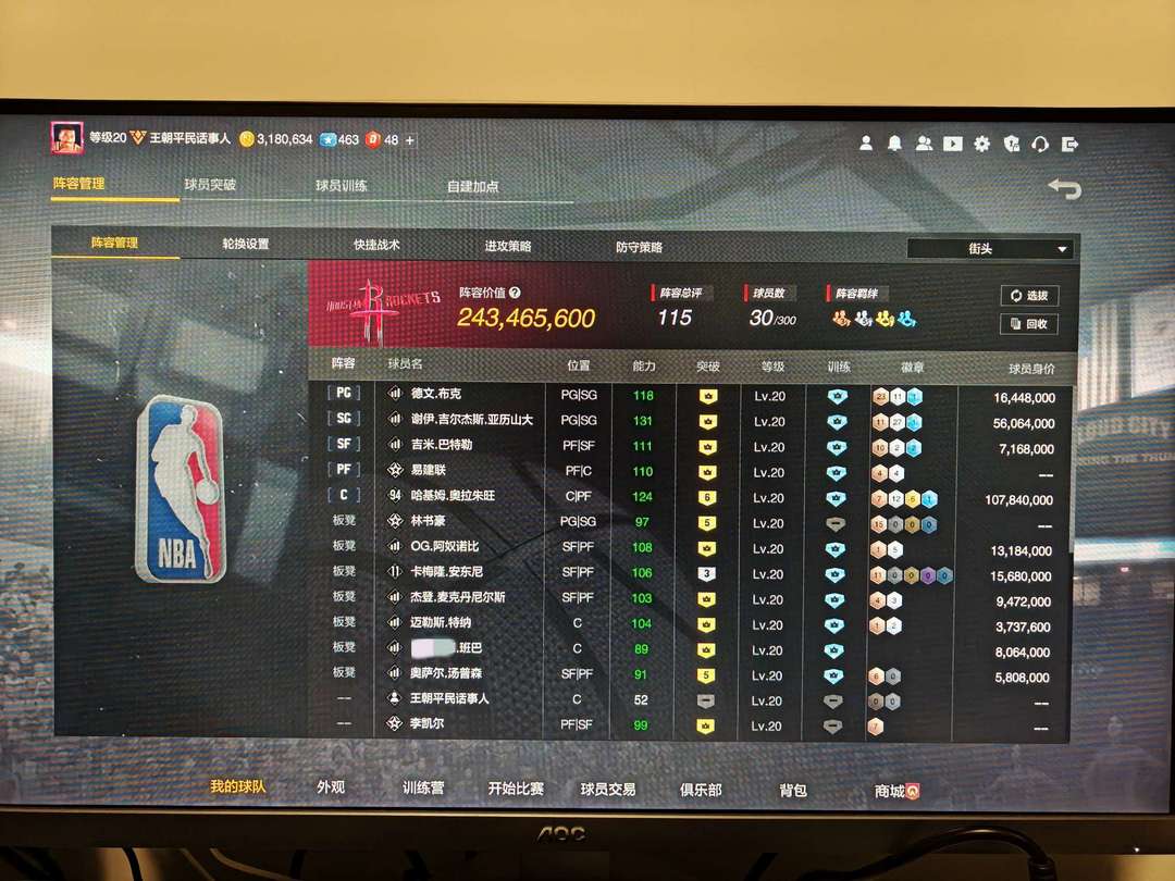 装备描述:(可排位)街头王朝完美阵容6大梦奥拉朱旺安东尼亚历山大布克杰登易建联李凯尔og巴特勒班巴超多满特训
