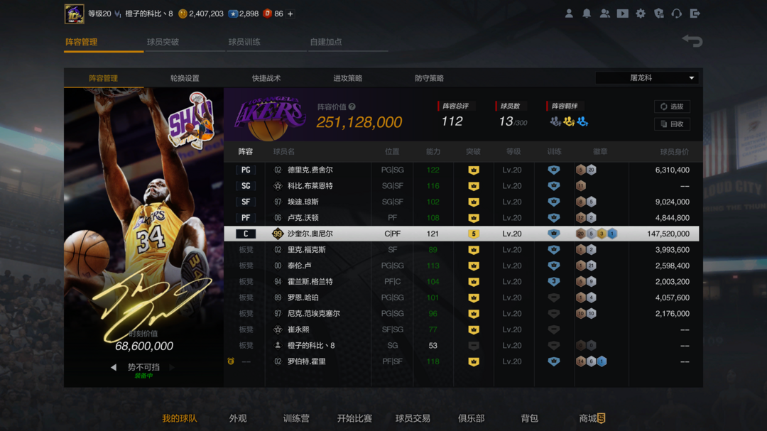 【OK组合】⭐满突8号收藏科比⭐湖人奥尼尔+大时刻⭐费舍尔 福克斯 琼斯⭐OK时期湖人历史队套