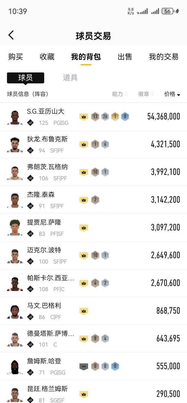 ⭐可排位⭐满亚历山大-狄龙-西卡⭐收藏球员李凯尔王治郅-小瓦格纳-黄蜂萨隆,骑士泰森⭐五个满训