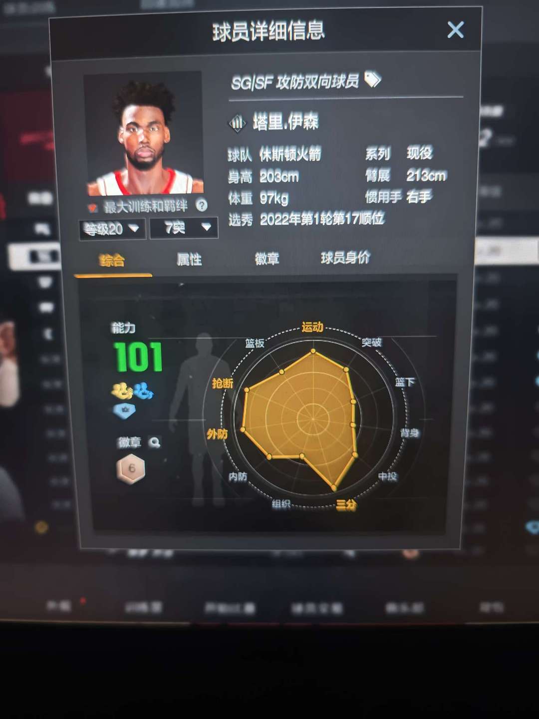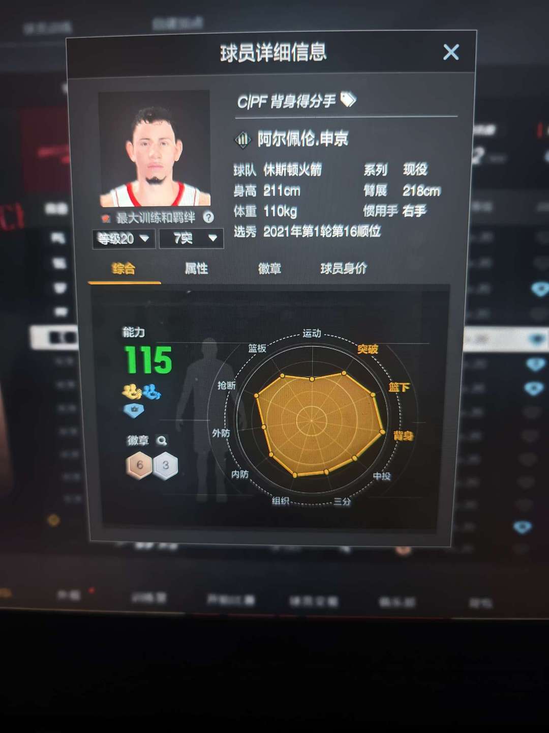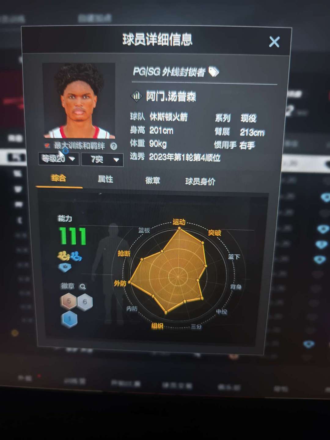 装备描述:10突杜兰特♥10突阿门汤普森♥10突申京❤10突伊森♥10突贾巴里史密斯✨火箭队套
