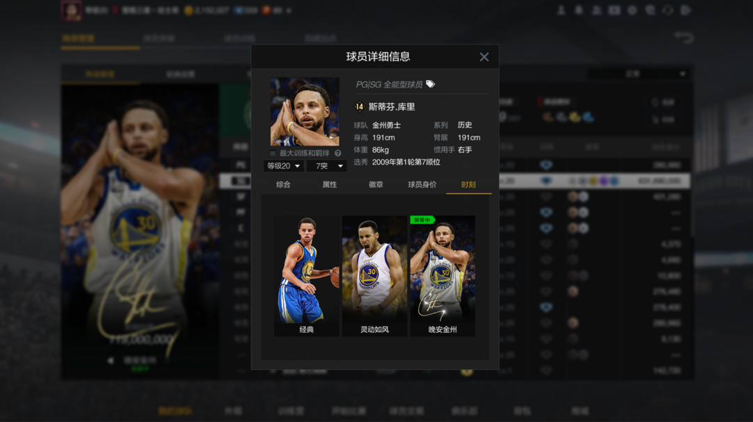 装备描述:双时刻10突库里!顶级三分!顶级徽章! 号内有近30套服饰!随便换! 库里不能无脑投,望爱护账号,不要恶意掉分谢谢~