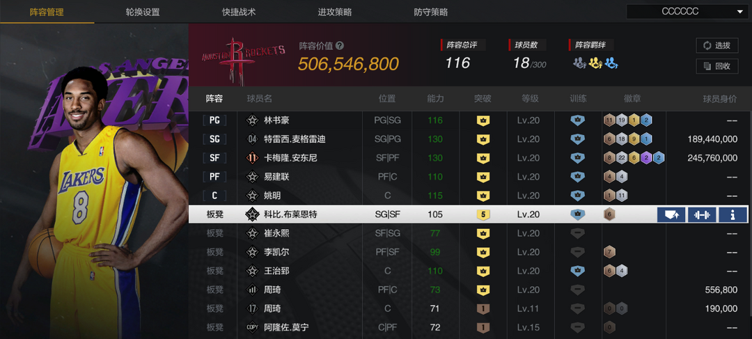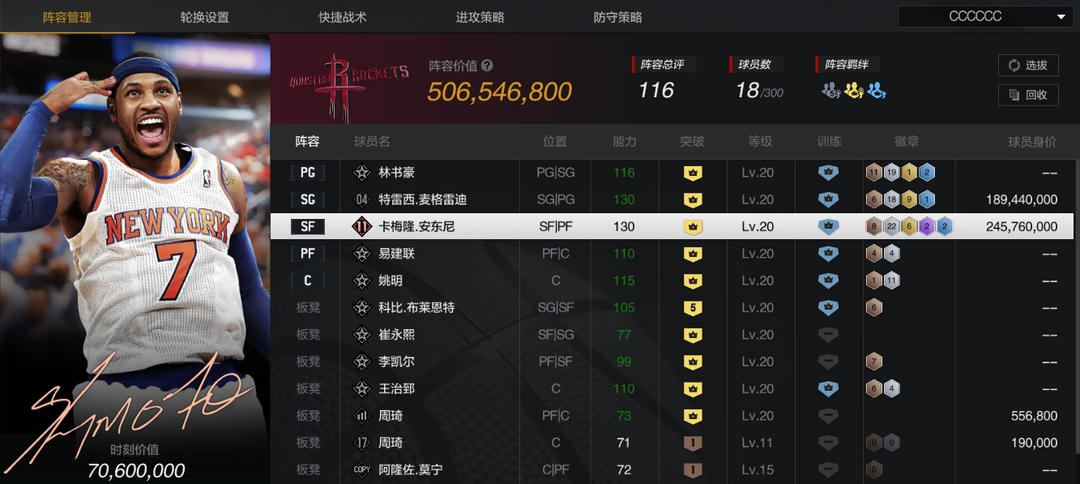 限制: 撤单率<50%才可租用此帐号装备描述:【10突大时刻甜瓜】【10突04麦迪】【10时刻书豪】【5收藏科比】【七收藏】【国家队】【火箭套】