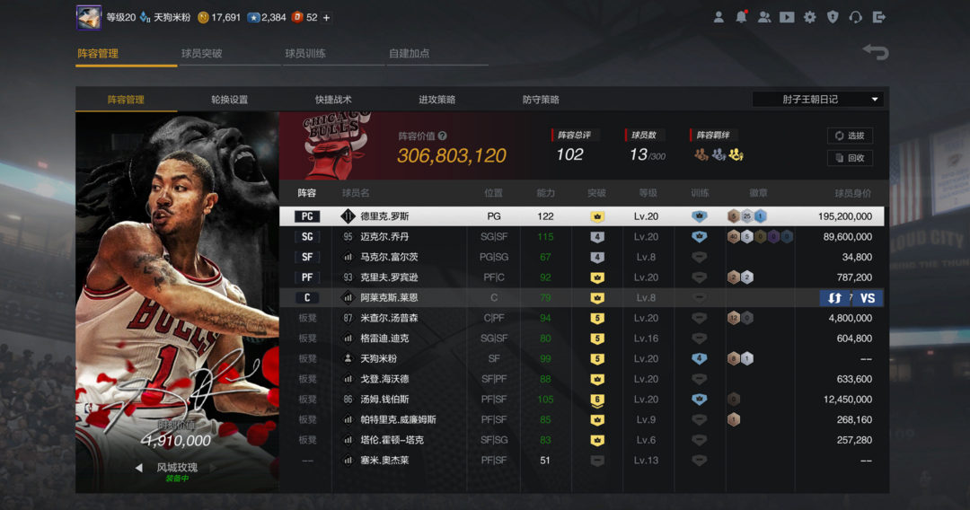 便宜玩时刻罗斯+时刻4乔丹+钱伯斯+一堆杂鱼,可排位