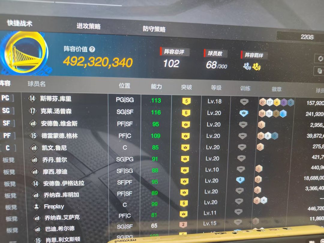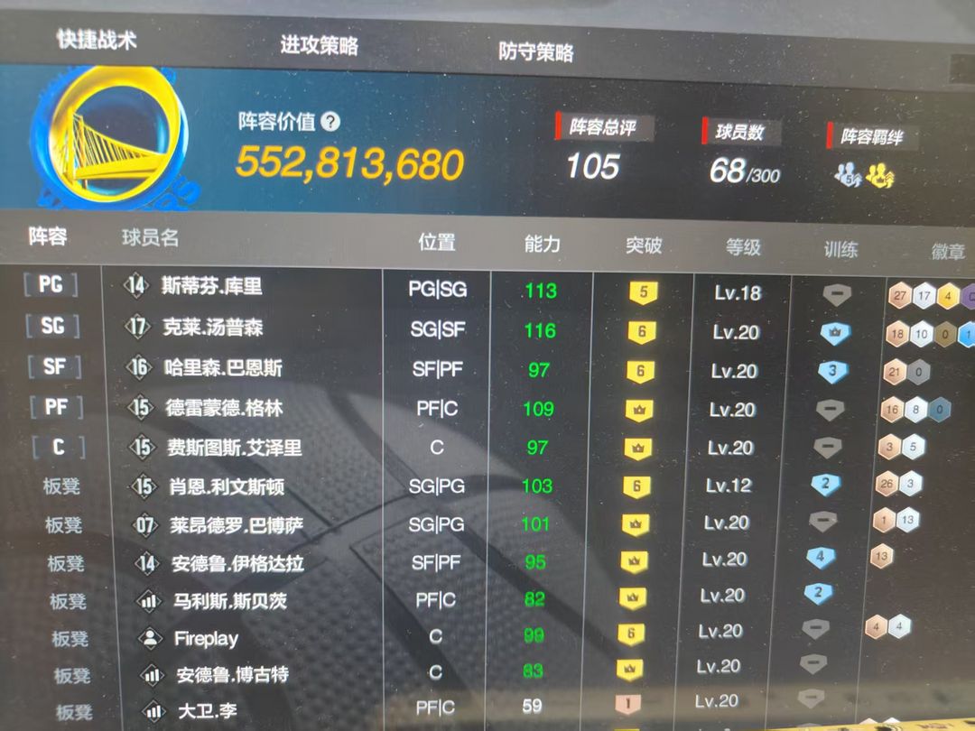 装备描述:5突库里,六突时刻汤普森⭐追梦格林 ⭐伊戈达拉 ⭐利文斯顿 ⭐艾泽利⭐巴博萨⭐巴恩斯