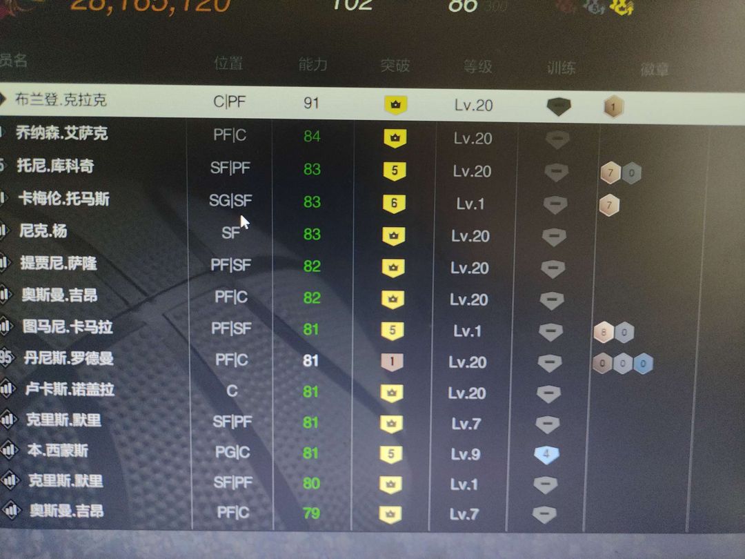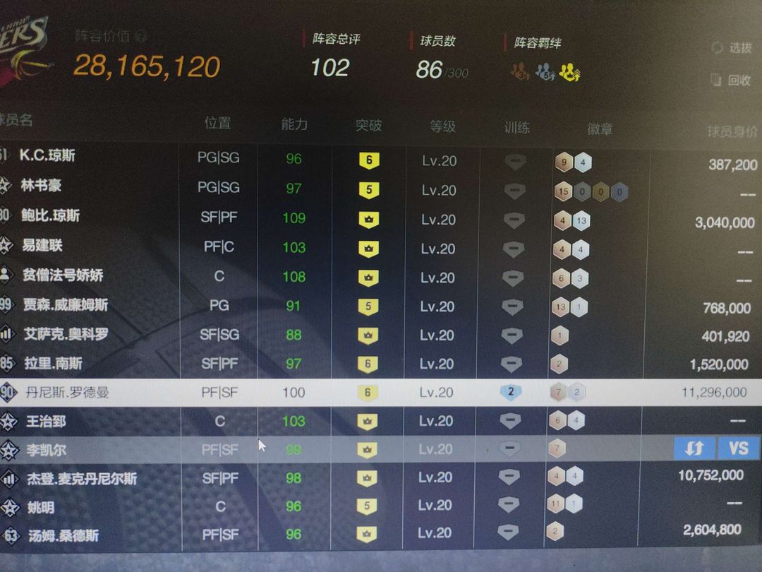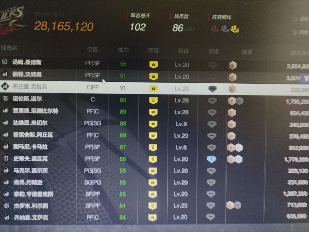 装备描述:账号球员很多,可以排位,喜欢防守的老板可以看看 防守球员很多