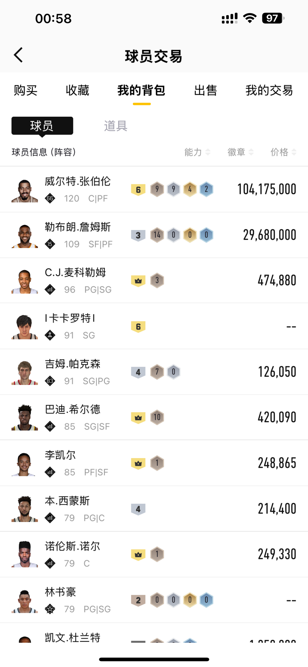 装备描述:6帅张伯伦张大帅3突骑士詹姆斯,街头段位全明星